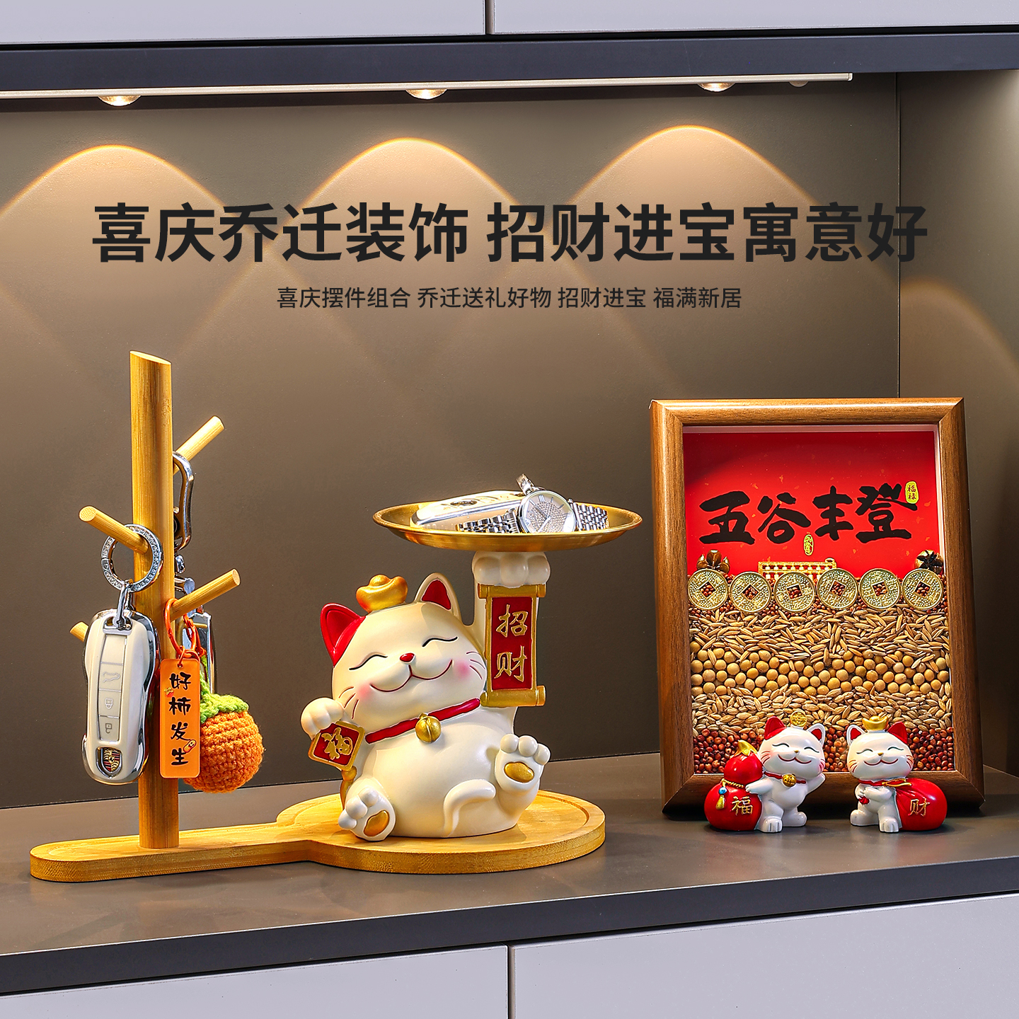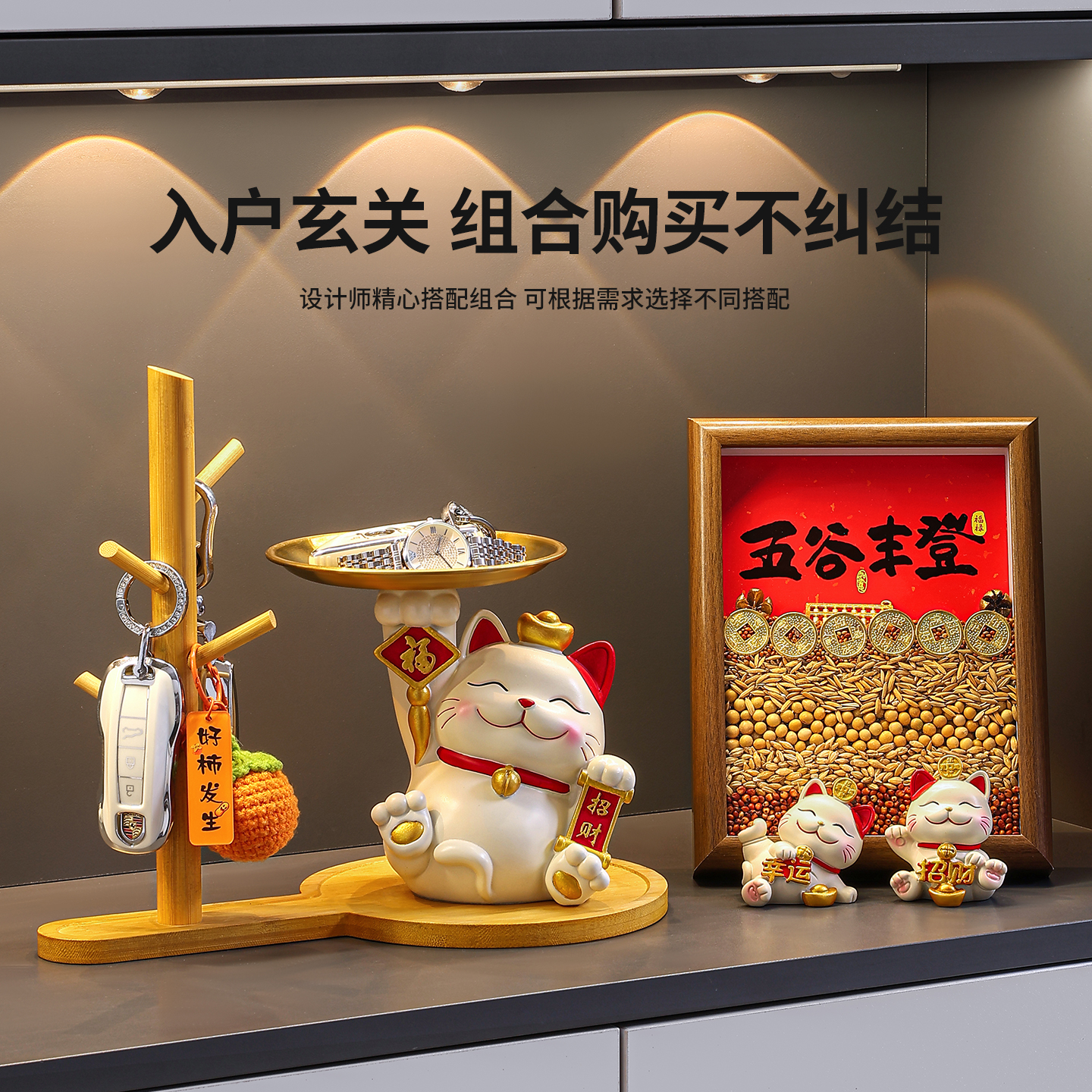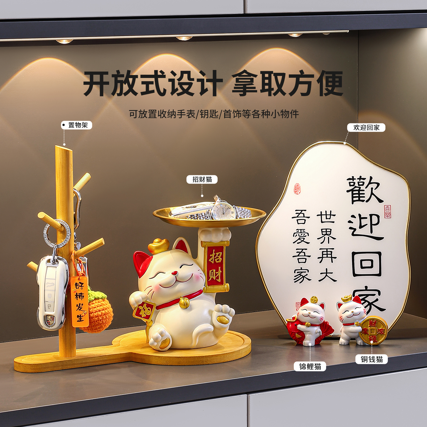招财猫钥匙收纳玄关摆件入户门口鞋 饰品乔迁新居入宅搬家礼物 柜装
