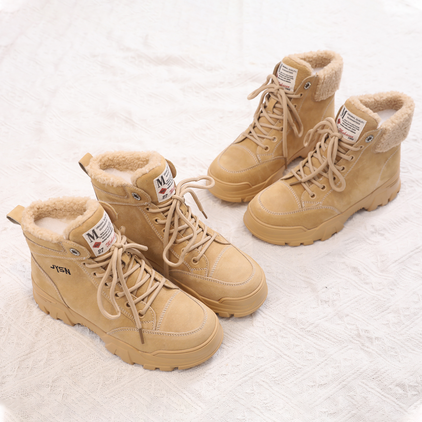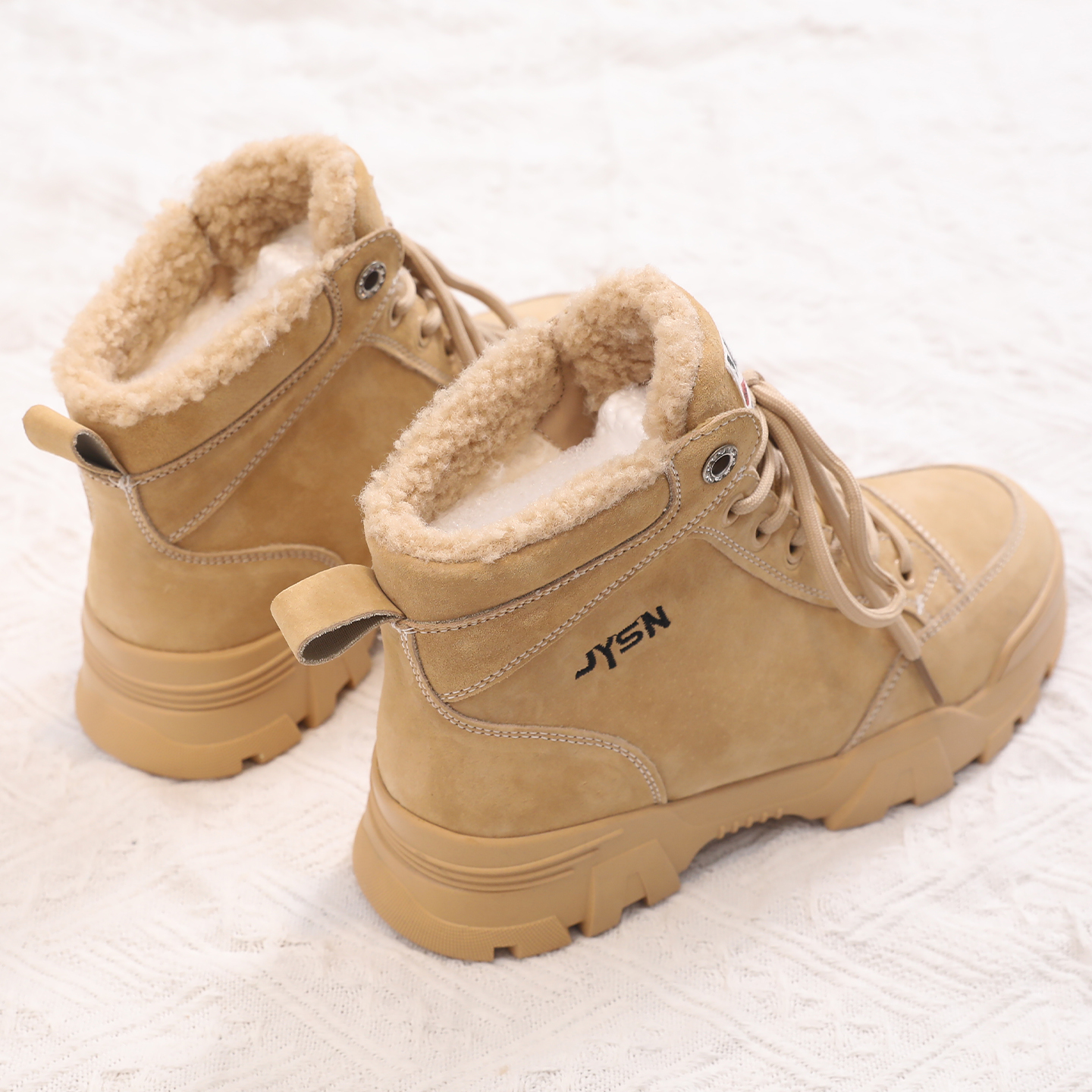 子加厚保暖棉鞋 短靴加绒鞋 厚底短筒马丁靴女 新款 真皮雪地靴女冬季