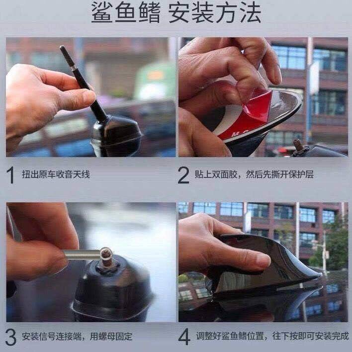 汽车装 饰鲨鱼鳍天线带信号收音机车顶尾翼天线免打孔太阳能爆闪灯
