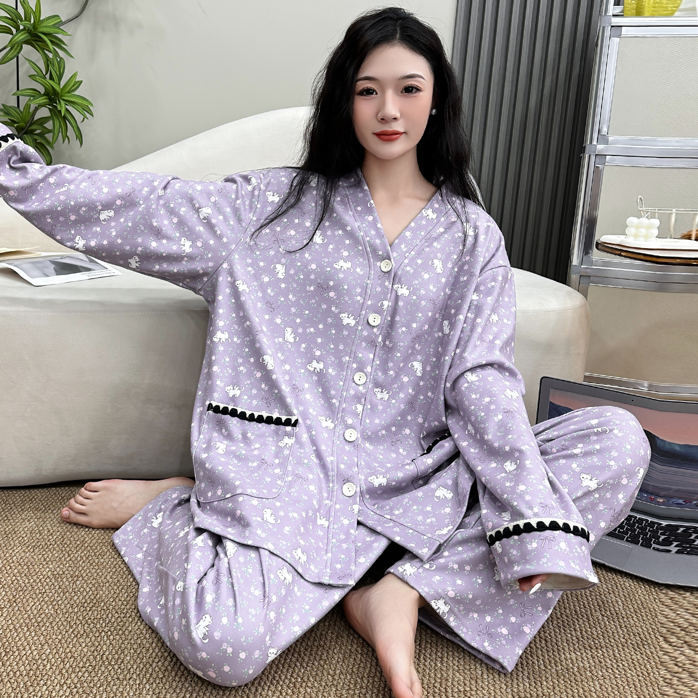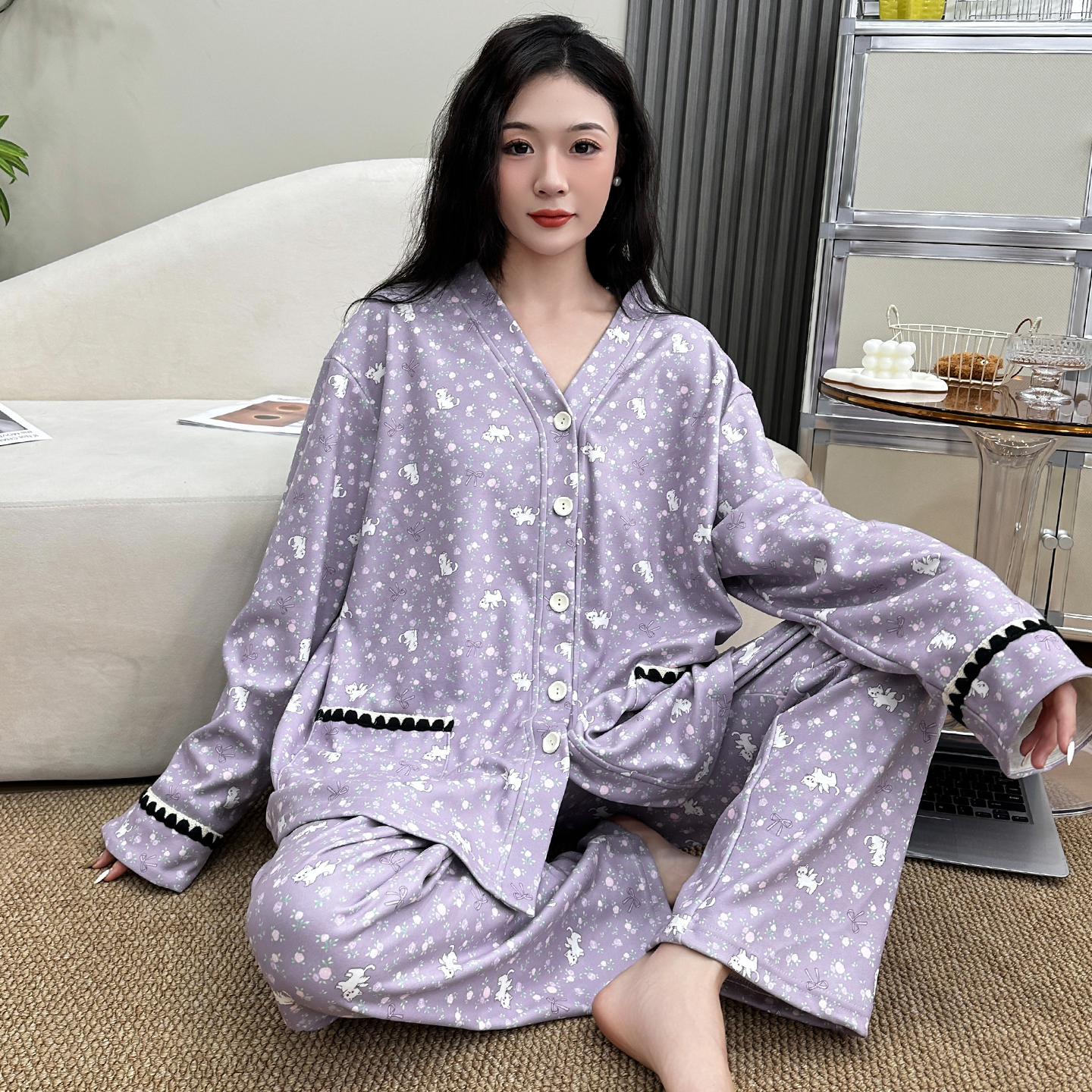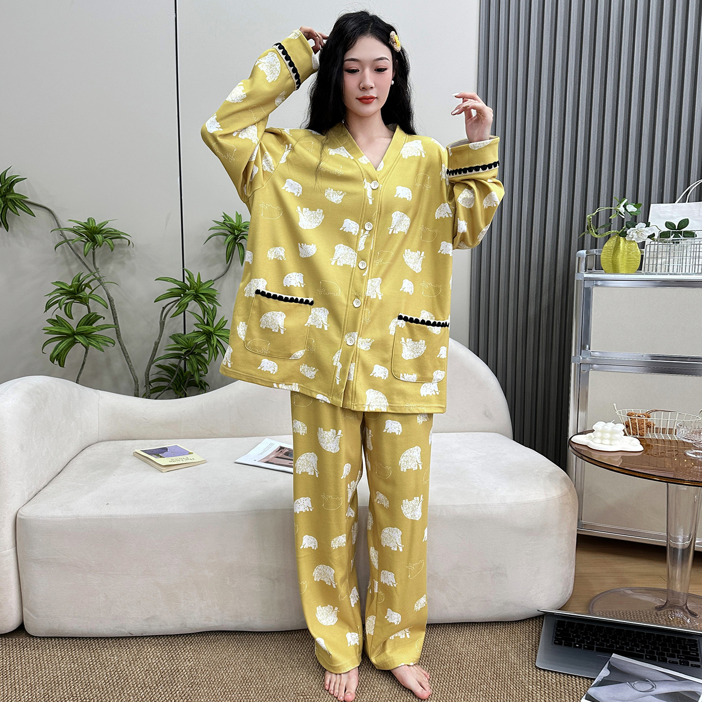 中厚款 胖mm宽松长袖 绵羊毛保暖家居服200斤 保暖睡衣女士大码 冬季