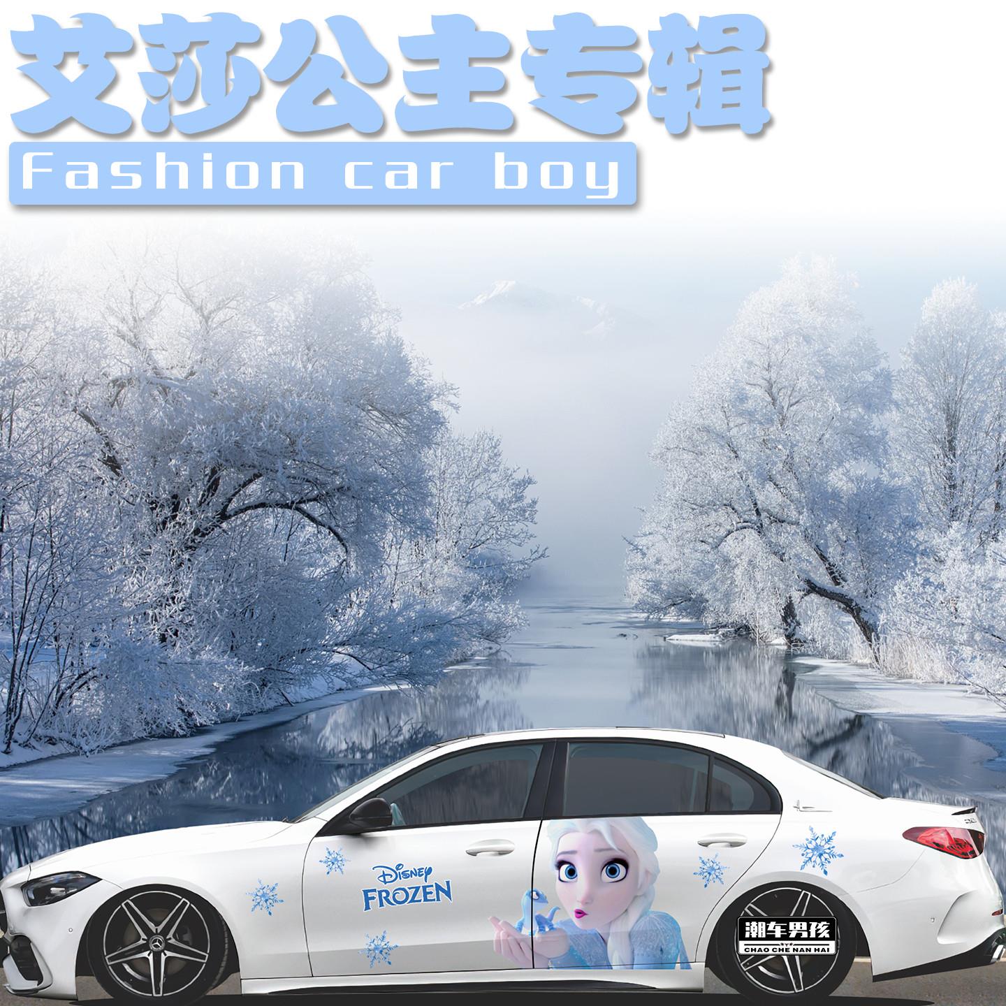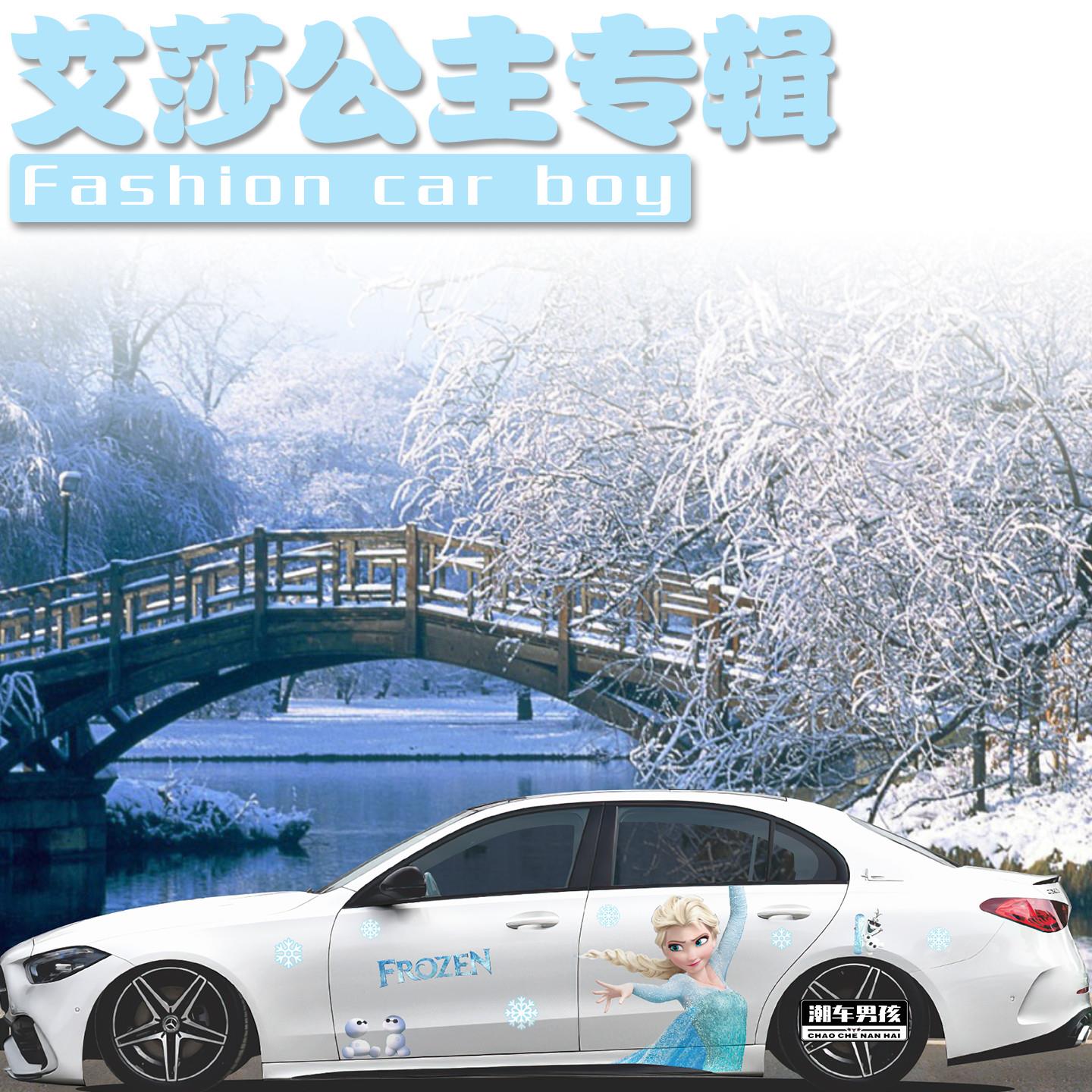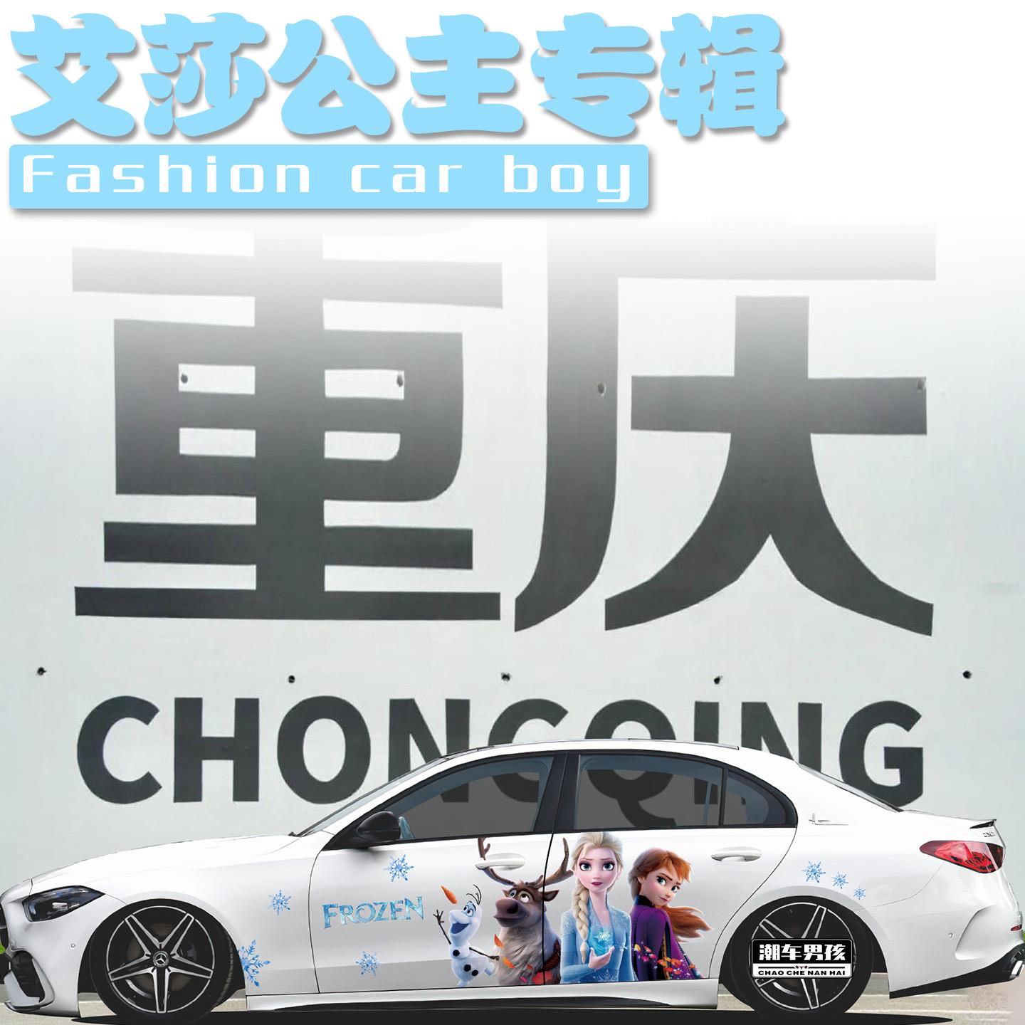小朋友奔驰C260车贴C200冰雪奇缘艾莎公主汽车车身贴个性 定制