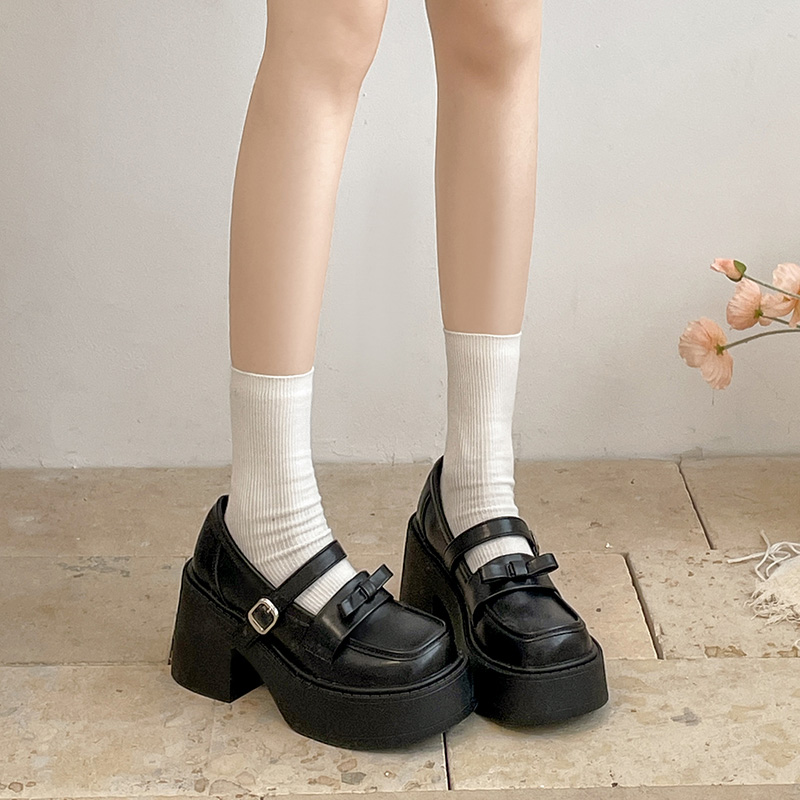 仙女温柔玛丽珍鞋 女2025夏新款 浅口单鞋 内增高蝴蝶结方头芭蕾舞鞋