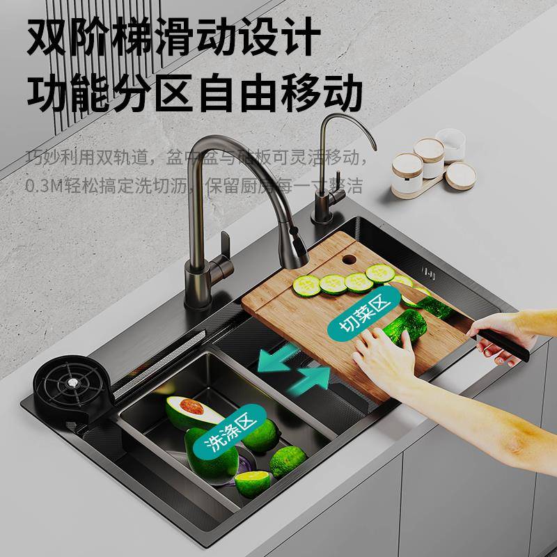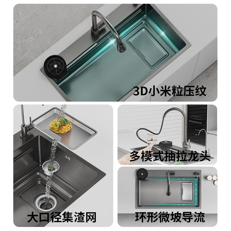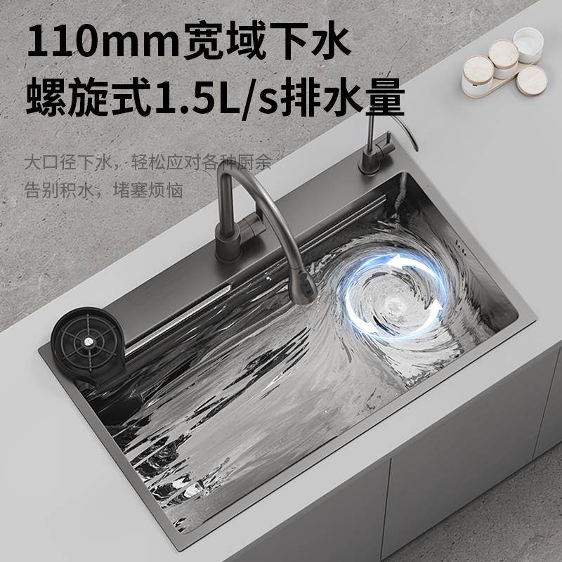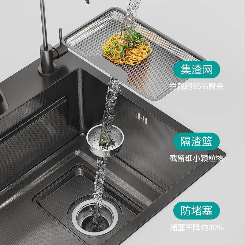 集渣厨房水槽压纹304不锈钢大单槽加厚家用洗菜盆台下盆洗手碗池
