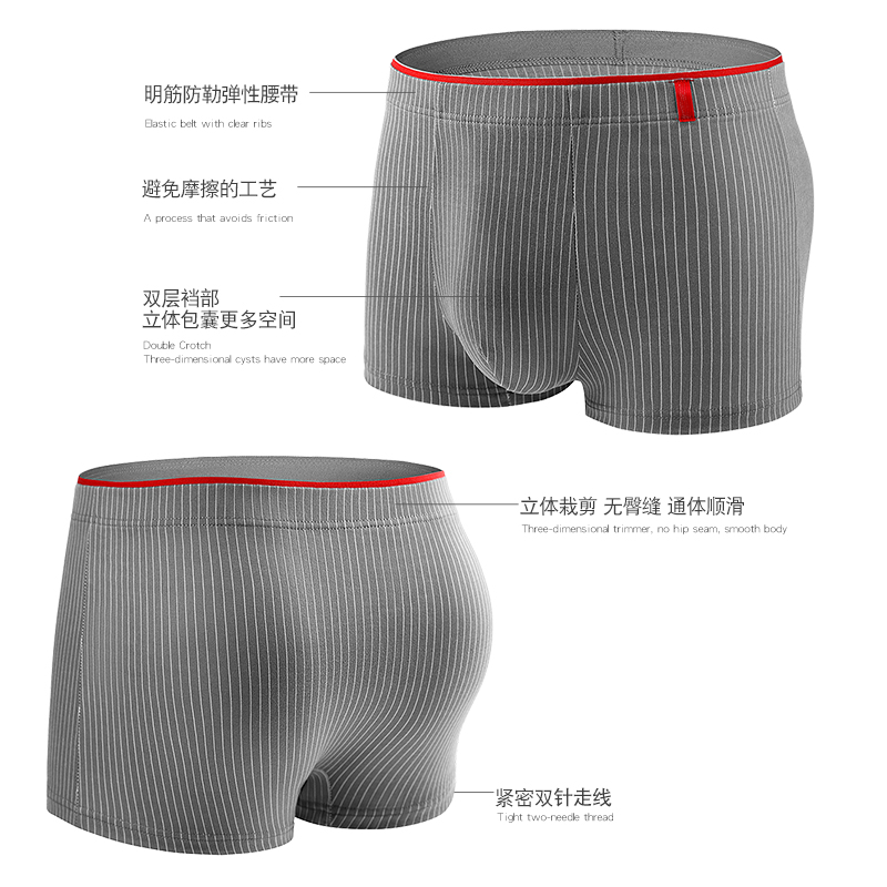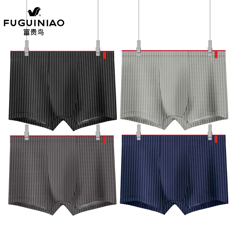 富贵鸟男士 平角裤 内裤 新款 衩子 纯棉男生舒适透气抗菌四角短裤 FGN