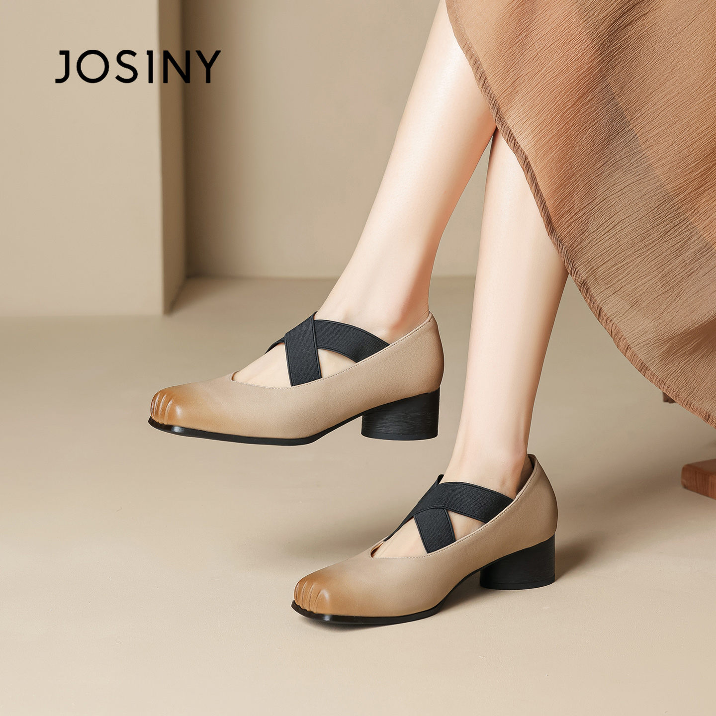 浅口鞋 套脚女鞋 女秋季 简约风低跟方跟单鞋 0206 新款 大东时尚