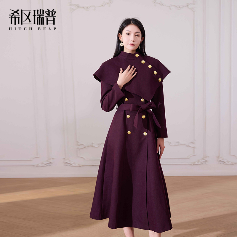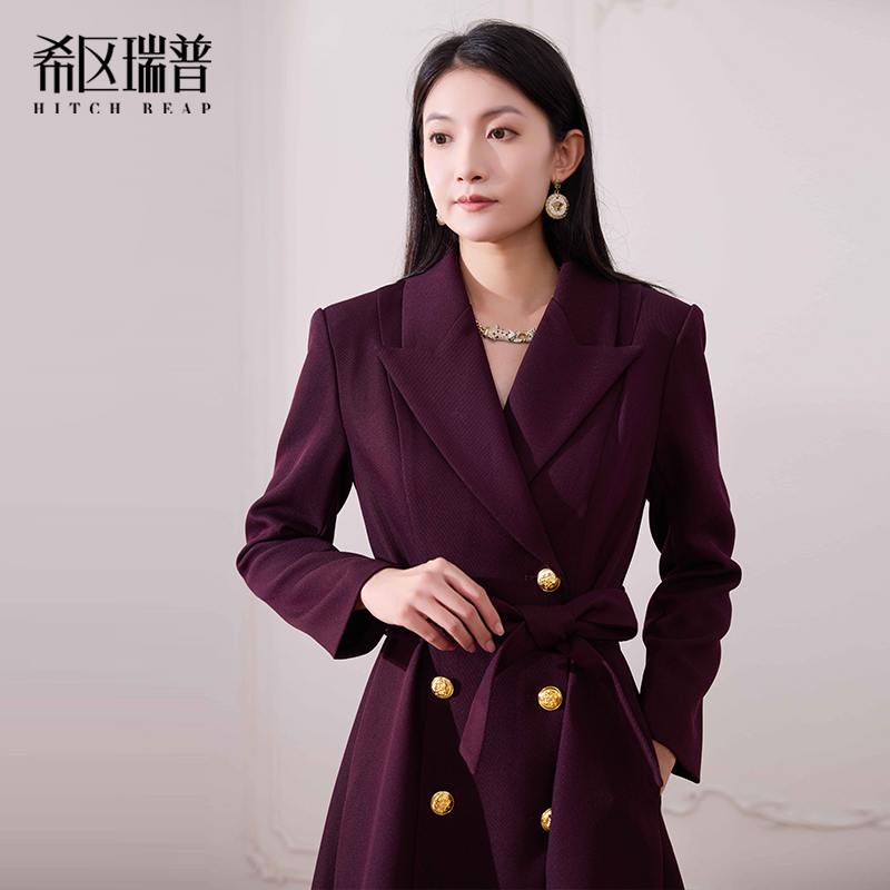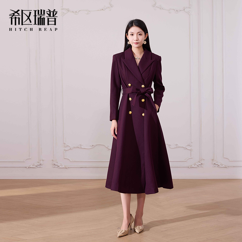 大衣 休闲英伦风小个子宽松薄款 紫涵中长款 直筒风衣外套女春秋新款