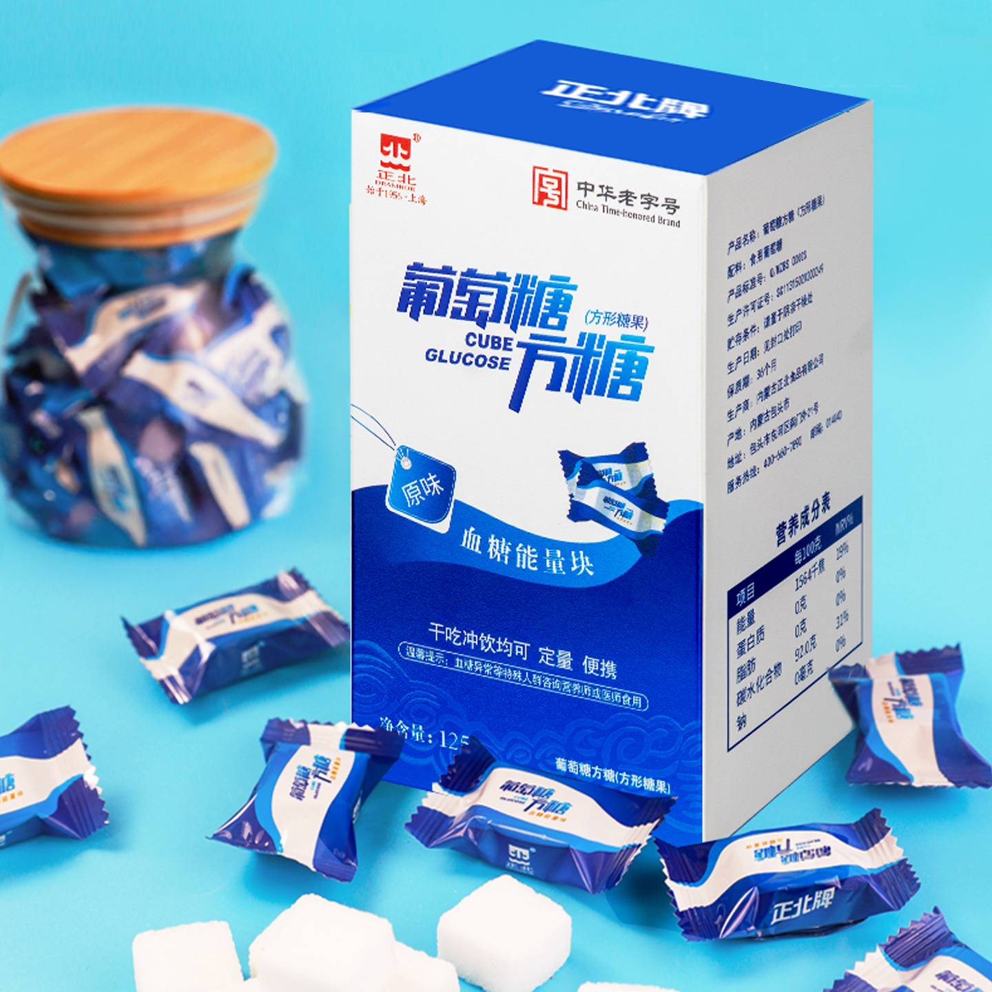 正北葡萄糖能量块方糖125gx2盒原味低血糖常备能量片独立包装 便携