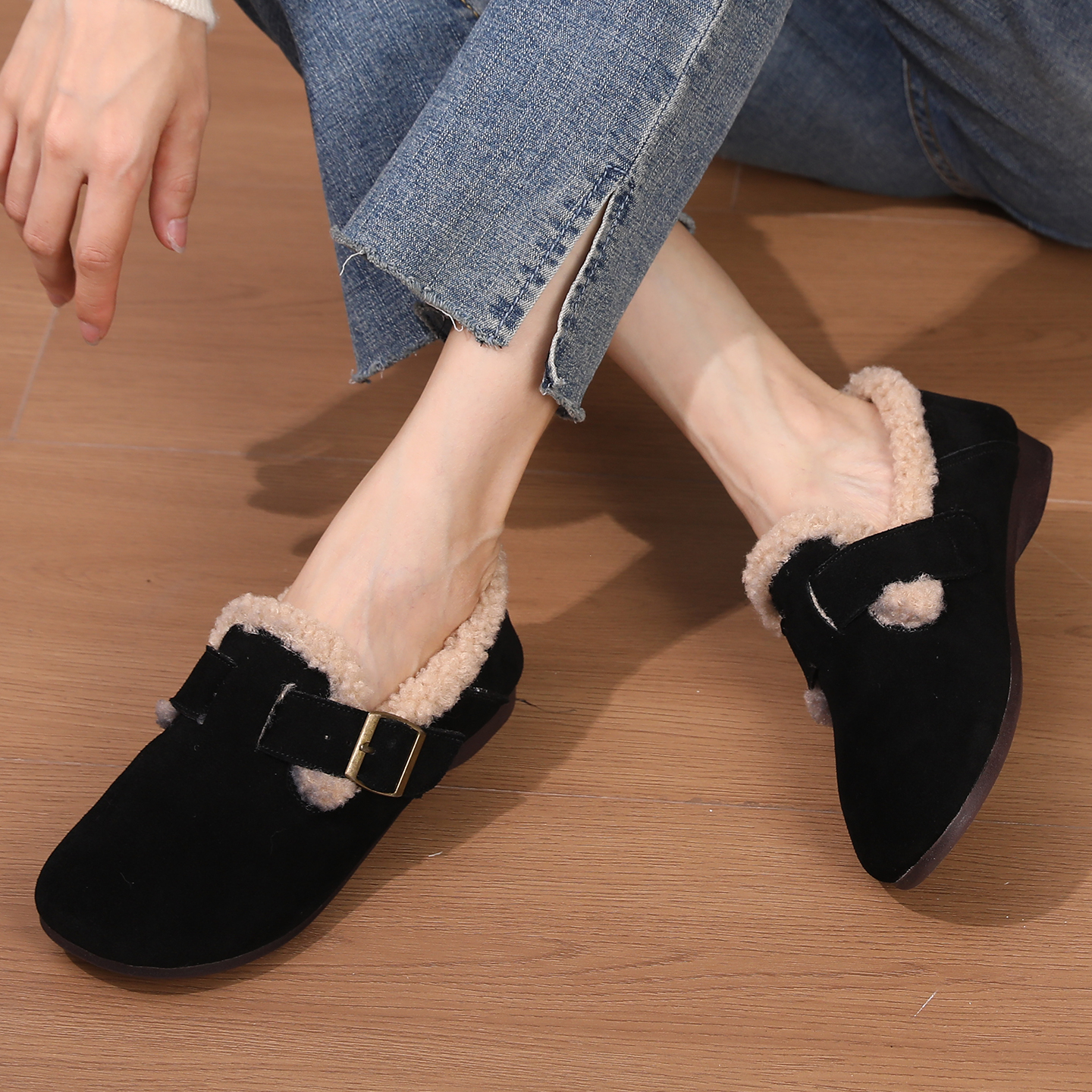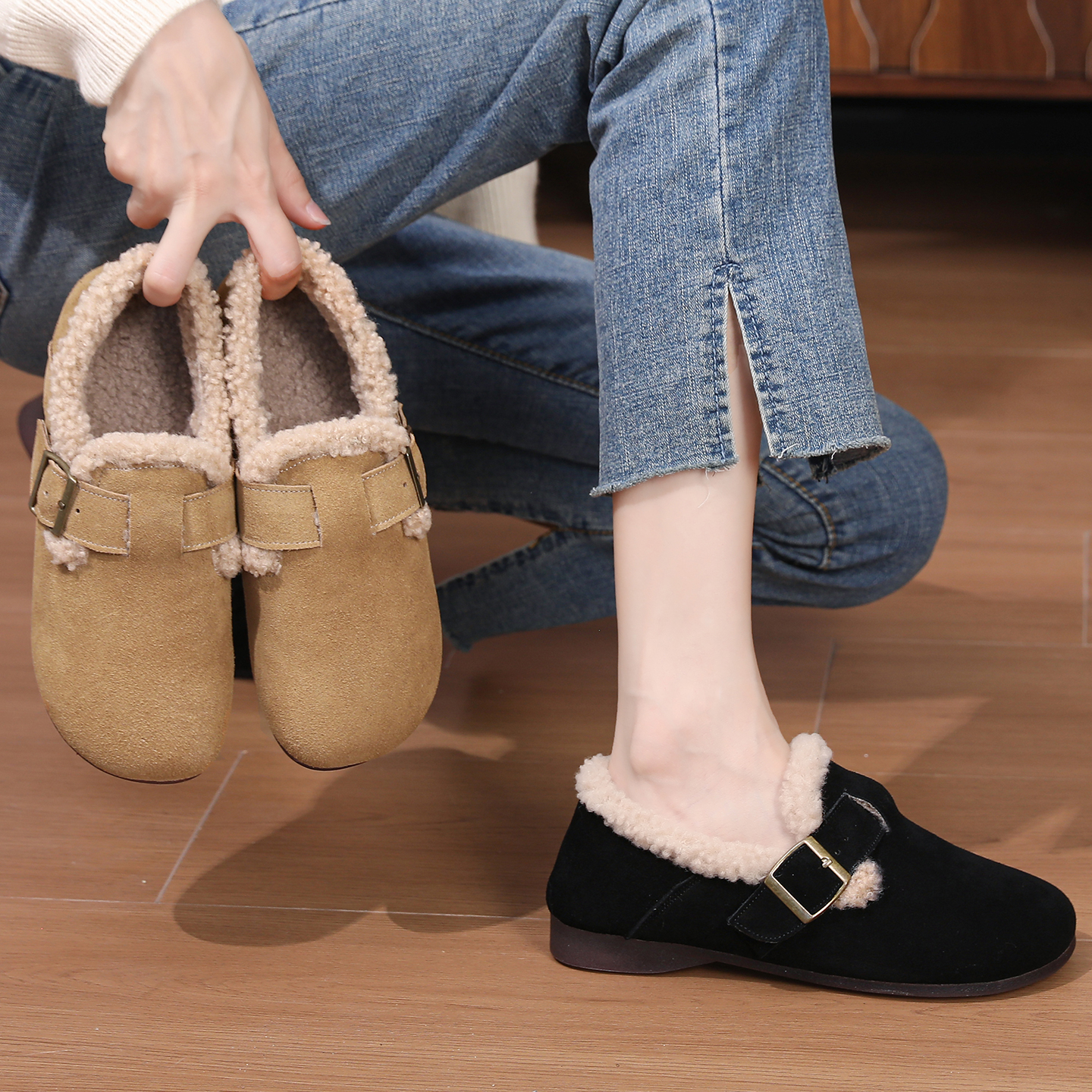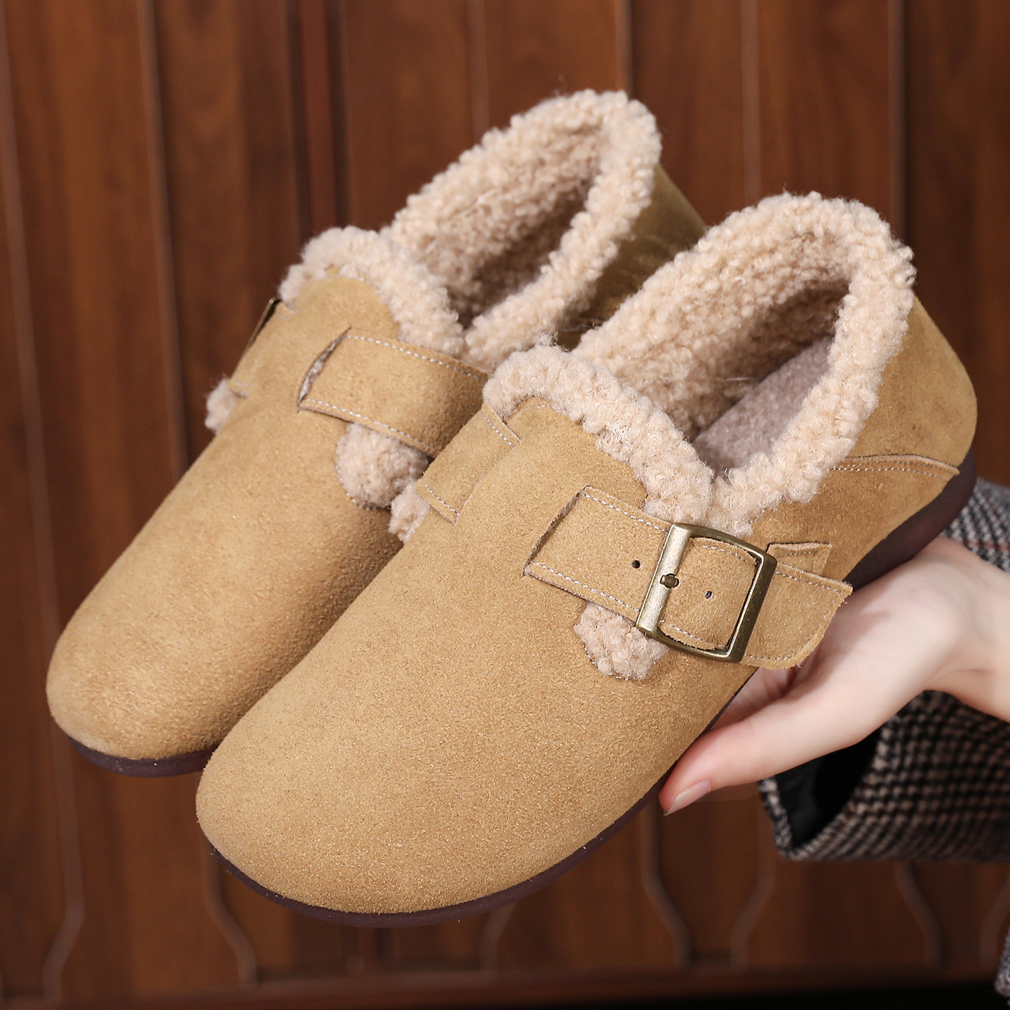 棉鞋 女软底勃肯鞋 2025新款 毛毛单鞋 保暖雪地靴 秋冬季 真皮加绒女鞋