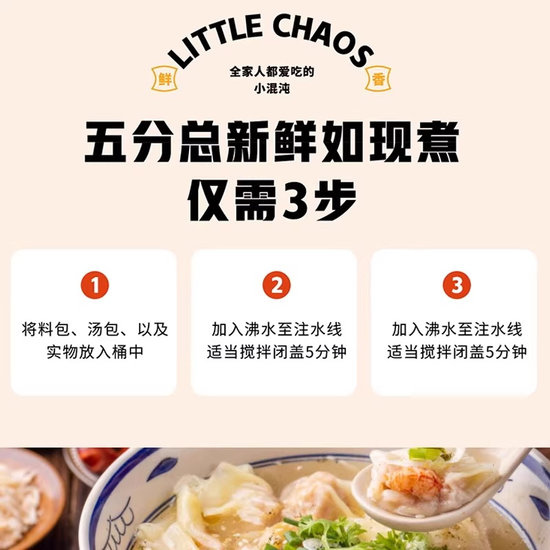 小馄饨速食桶装 免煮冲泡早餐夜宵云吞鲜肉紫菜虾米抄手小吃零食品