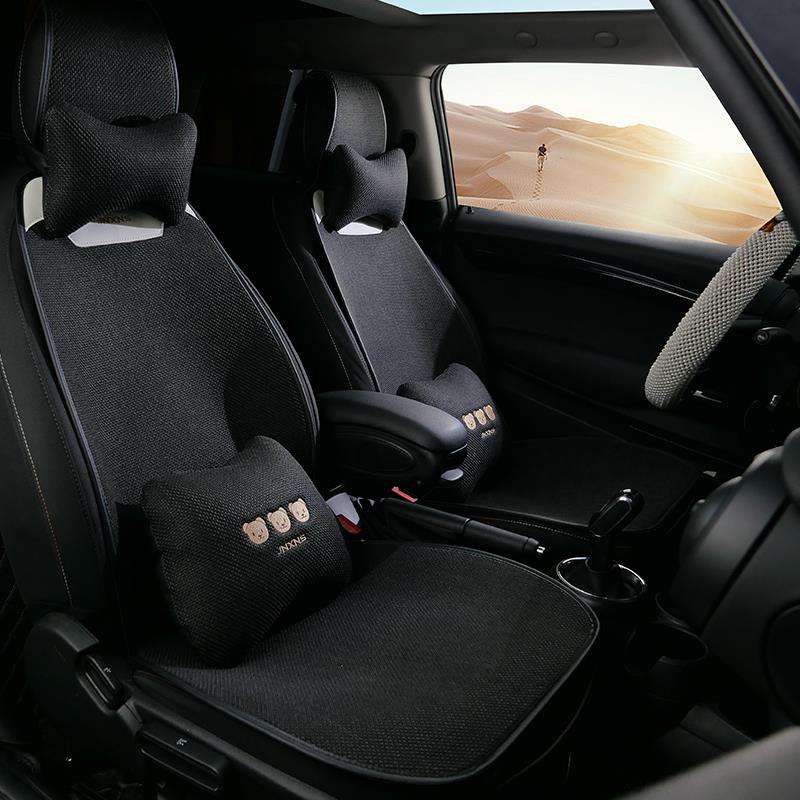 汽车坐垫四季 毛绒座椅套 通用亚麻棉可爱半包座套女士车内座垫冬季