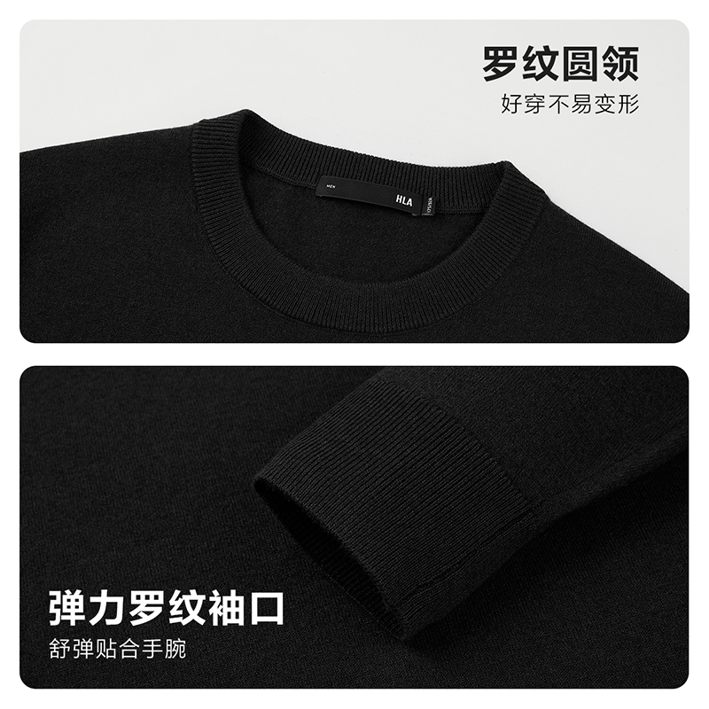 黑色毛衣打底男 25秋新款 HLA 海澜之家轻商务含羊毛含桑蚕丝针织衫