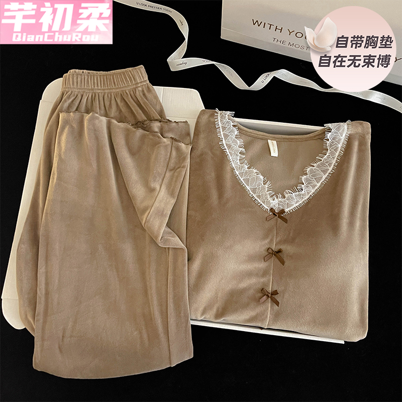 法兰绒春秋天套装 秋冬季 珊瑚绒睡衣女冬加厚加绒家居服2025年新款