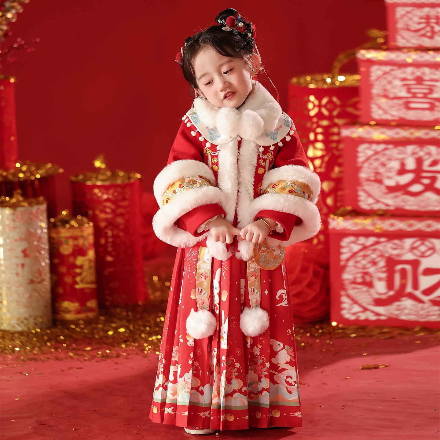 国风冬季 儿童马面裙套装 2025新款 明制汉服女童秋冬拜年服古风唐装