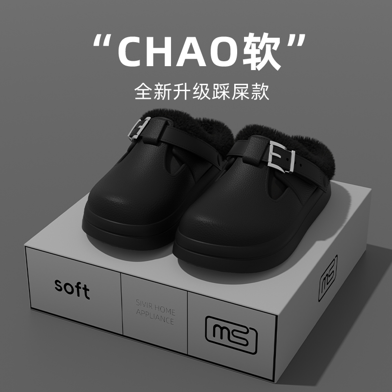 棉拖鞋 百搭新款 女可外穿厚底踩屎感保暖防水居家 加绒勃肯鞋 秋冬季