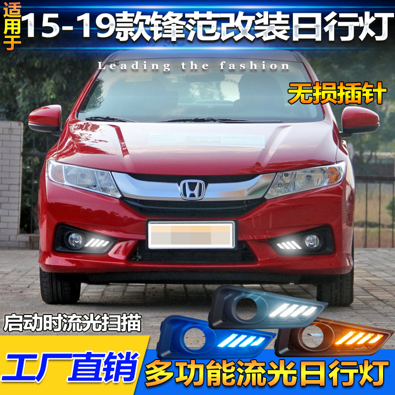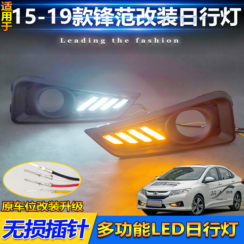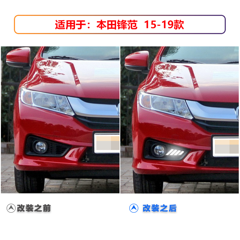 LED流光前雾灯日间行车灯转向灯 本田锋范日行灯改装 适用于15 19款
