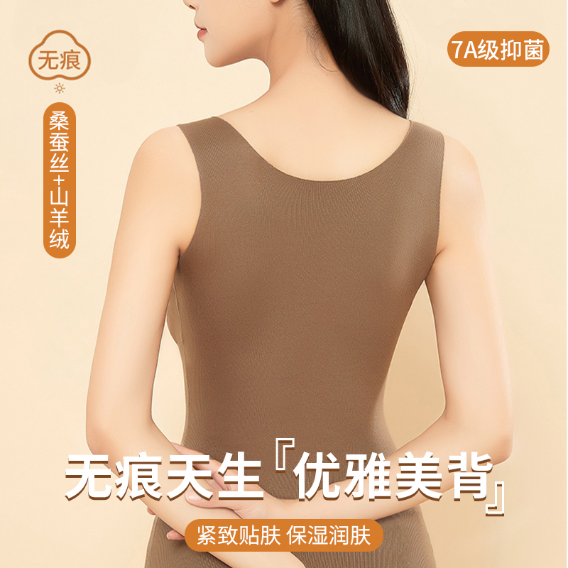 猫人保暖背心女士2025新款 无痕德绒加厚羊绒蚕丝吊带打底内衣秋冬