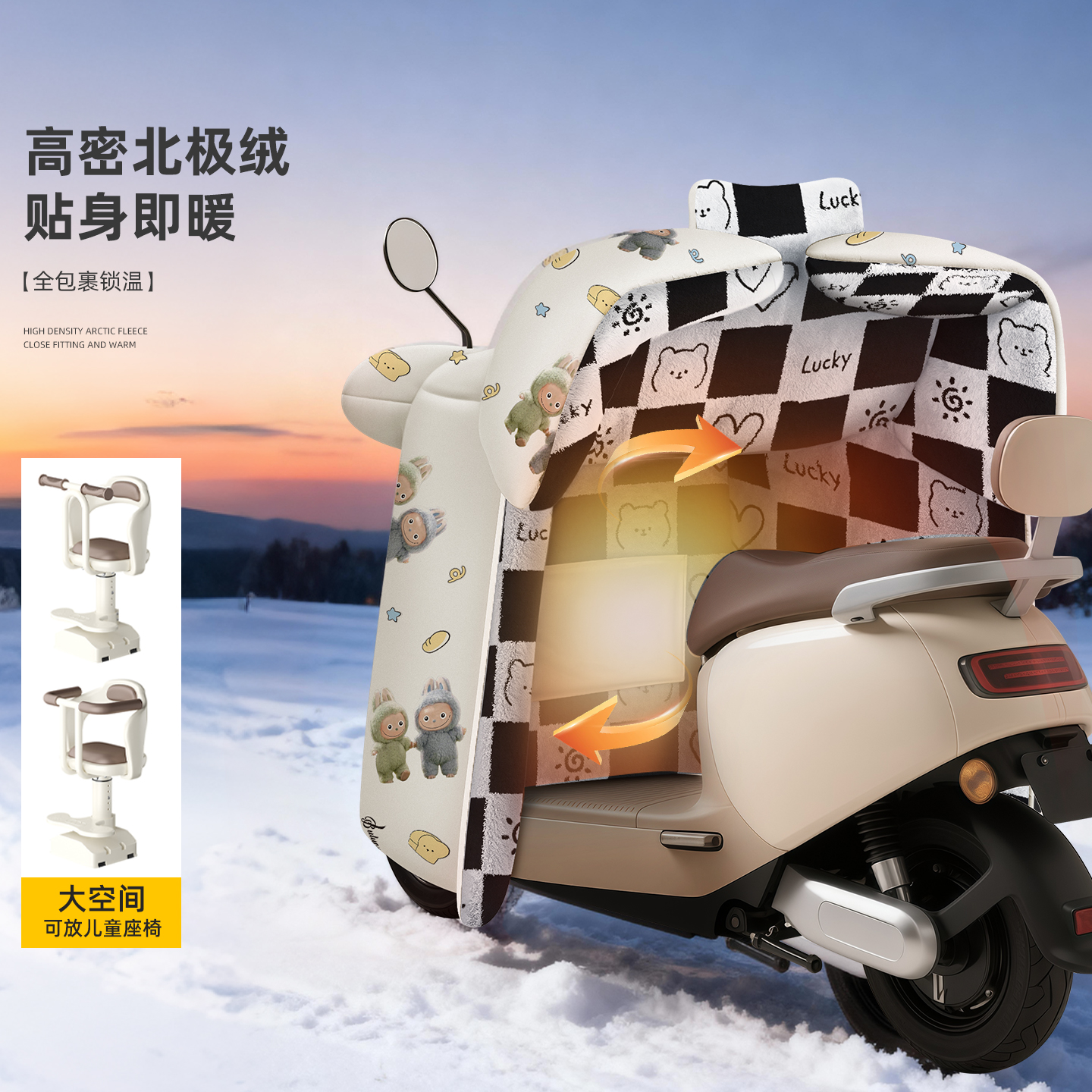 通用 加绒加厚电瓶摩防水防风罩四季 亲子款 电动车挡风被带小孩冬季