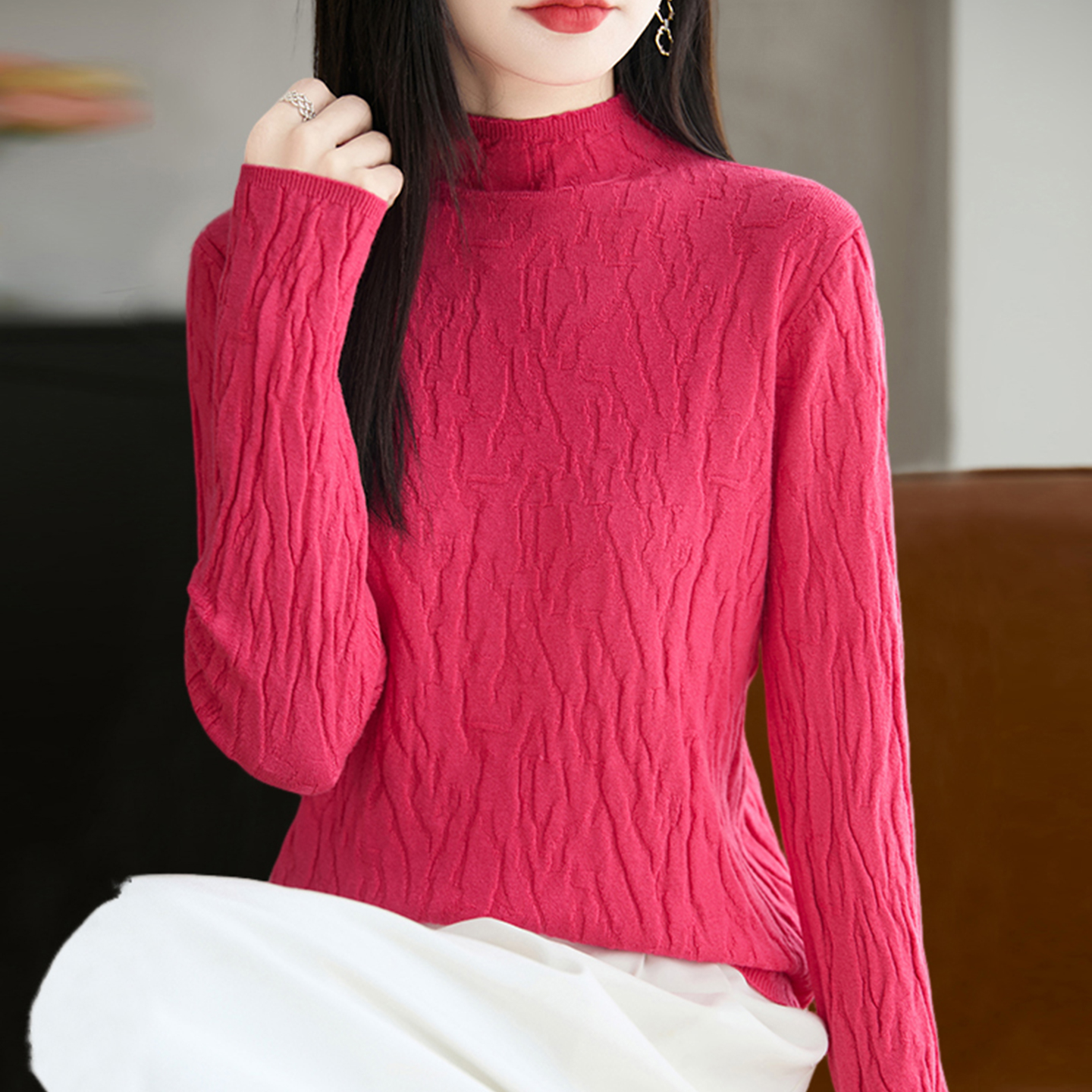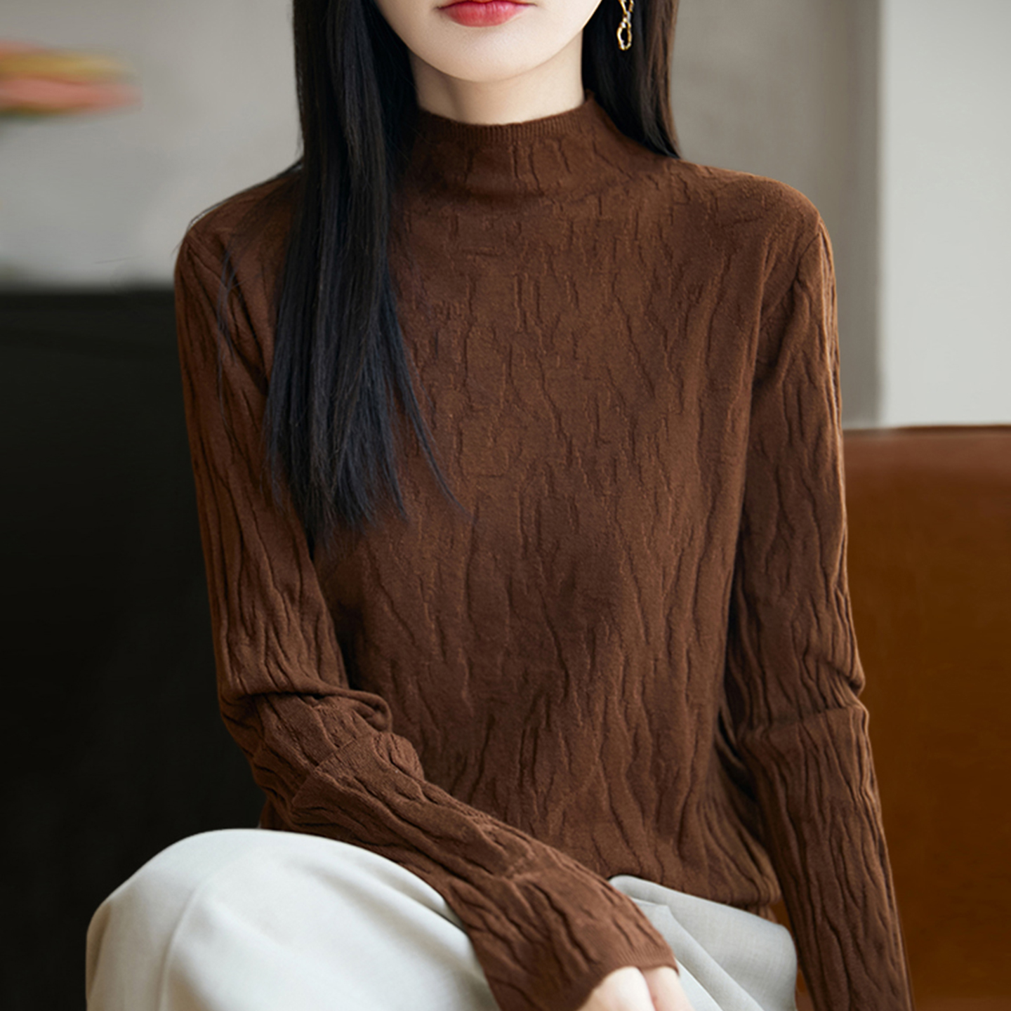 女装 春秋洋气大码 上衣秋冬毛衣 女2025新款 显瘦半高纹理针织打底衫