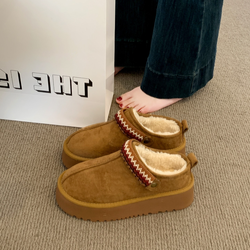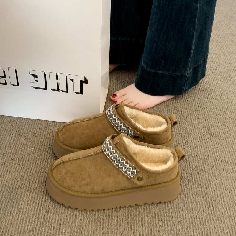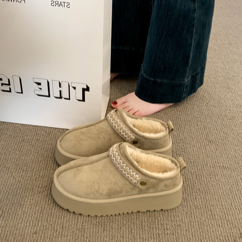 一脚蹬懒人包头勃肯鞋 加绒保暖棉鞋 冬季 厚底两穿雪地靴女2025新款