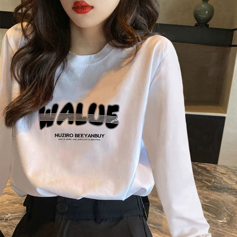 宽松显瘦纯色打底衫 新款 t恤女2025爆款 秋冬洋气减龄白色纯棉长袖