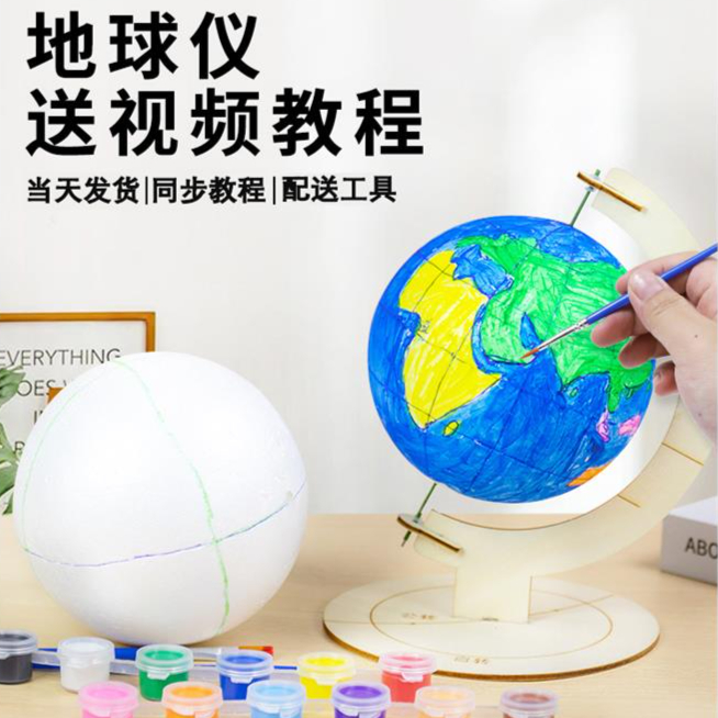 做地球仪 材料包手工DIY地球仪材料包半成品泡沫球早期模型木制