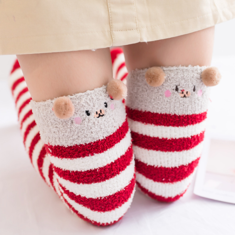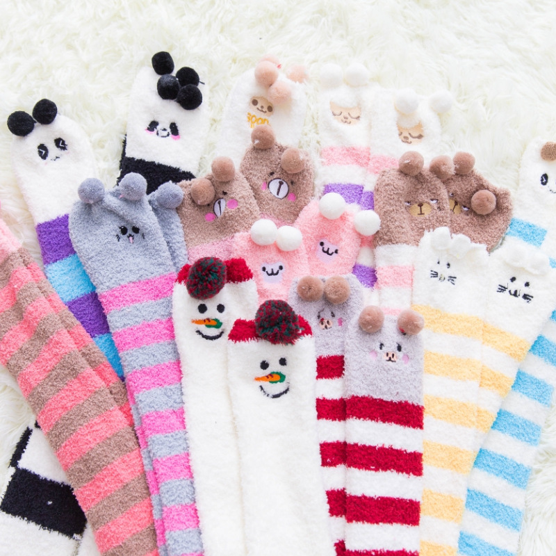 2020年秋冬新款 女卡通动物图案 女士珊瑚过膝袜加厚加长