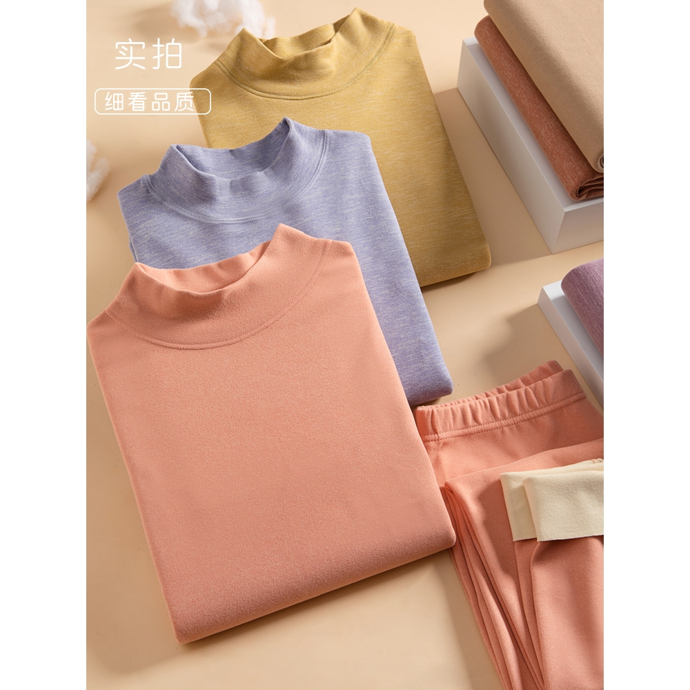 冬 妈妈奶奶打底衫 荭豆保暖衣中老年套装 加厚加绒德半高领秋衣秋裤