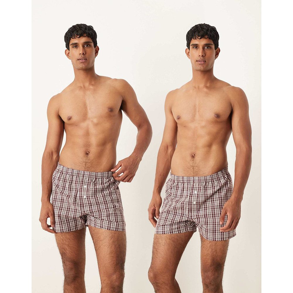 2件套 设计梭织红色格纹四角裤 男士 香港直邮ASOS
