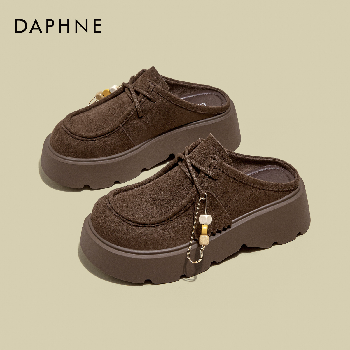小个子复古休闲袋鼠鞋 新款 女2025年秋季 达芙妮厚底增高勃肯半拖鞋