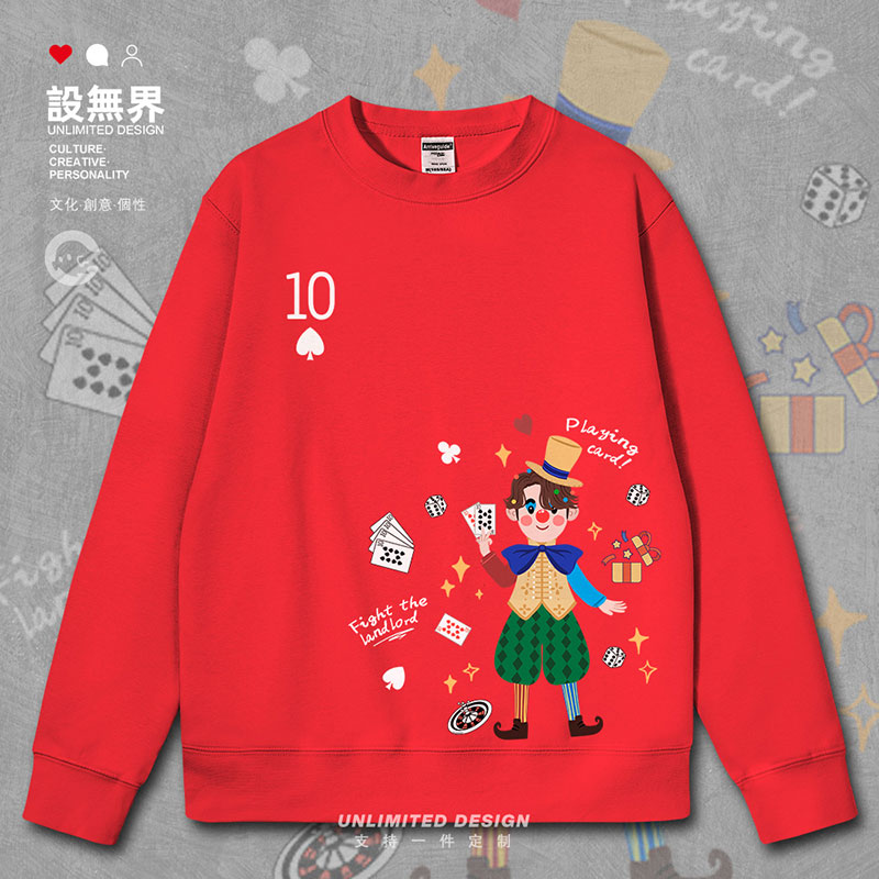 扑克牌黑桃10欢乐斗地主趣味个性 无界 创意连帽卫衣男女秋0017设