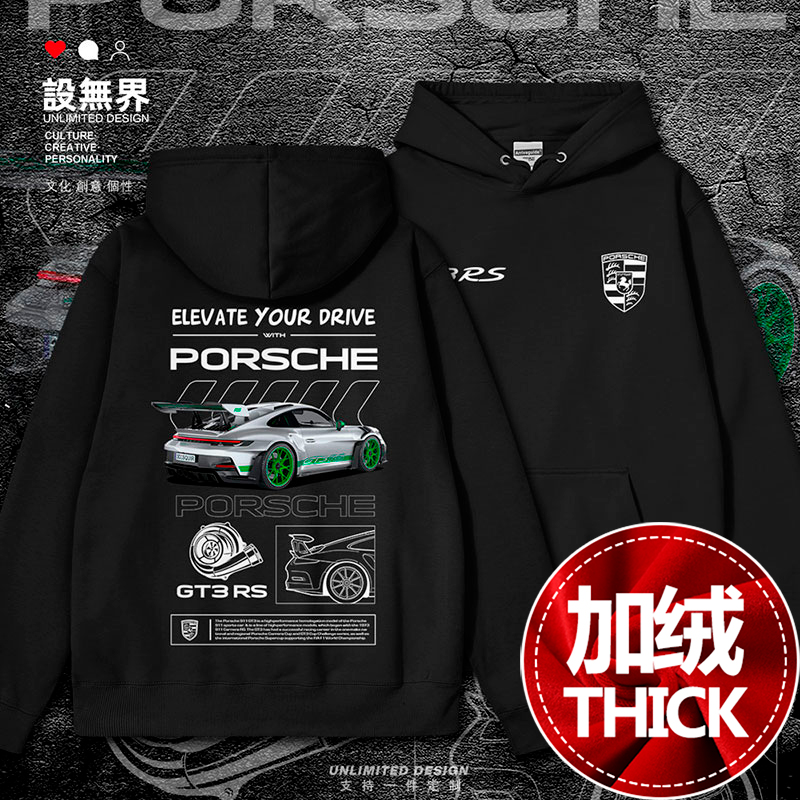 无界 秋设 保por时捷sche 911跑车速度激情连帽卫衣男女潮套头帽衫