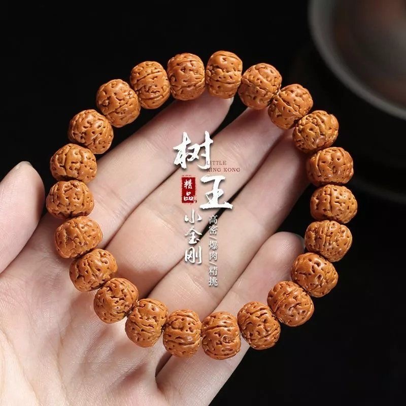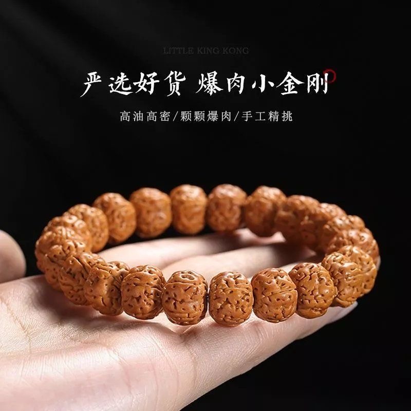 树王爆肉小金刚菩提子手串配饰男士 核桃原籽文玩佛珠单圈盘玩手链