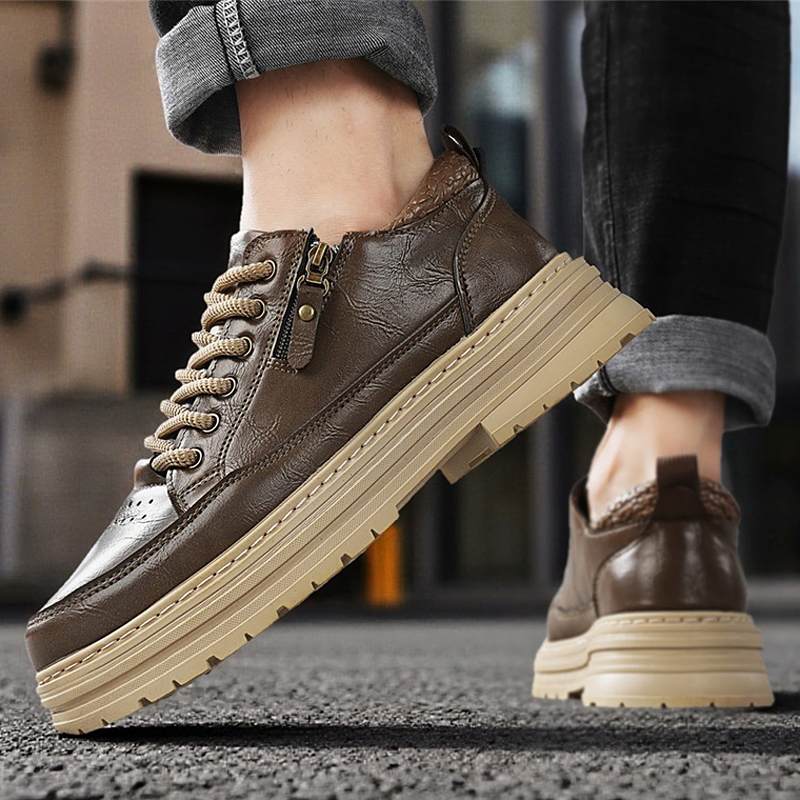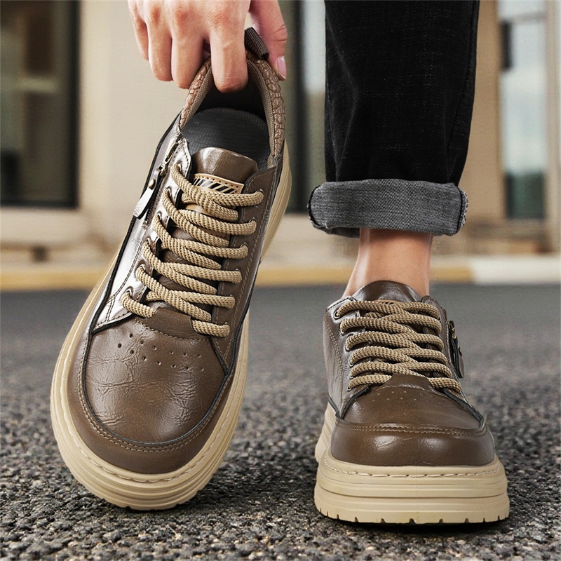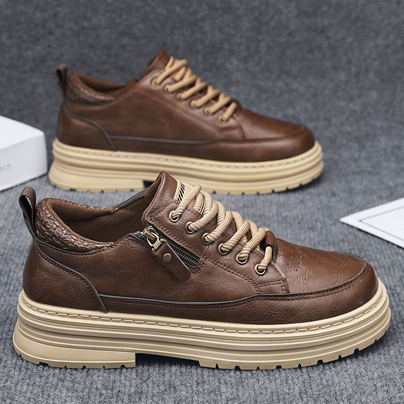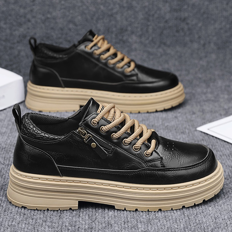 休闲厚底低帮工装 秋季 板鞋 男士 男鞋 皮面增高防滑运动潮鞋 2025新款