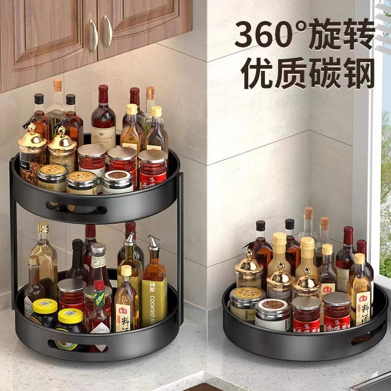 厨房旋转调料架台面转角多层专用放调味品油盐酱醋调料瓶罐碗架