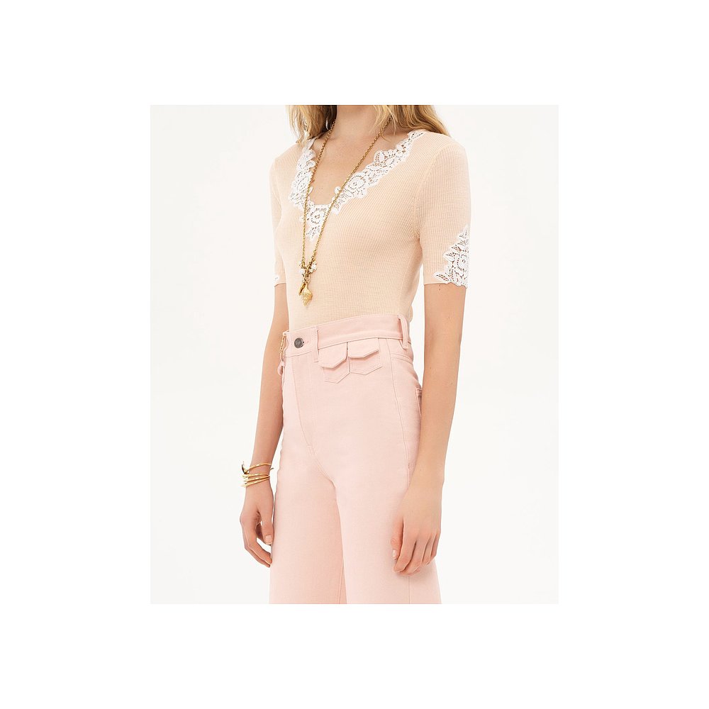 香港直邮Chloe CH25UMP10615 蕾丝羊毛针织上衣