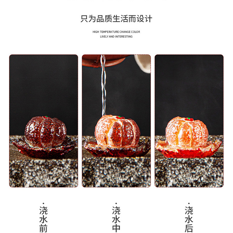 手工陶瓷柿子茶叶罐茶宠工艺事事如意家居摆件仿真水果茶具零配件