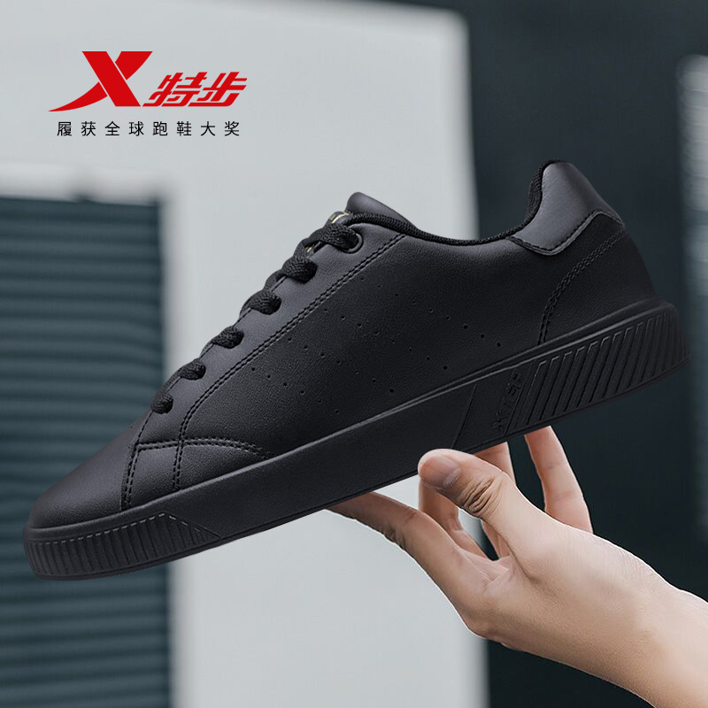夏透气薄款 黑色男鞋 青少年休闲鞋 特步板鞋 低帮鞋 2025新款 经典 男款