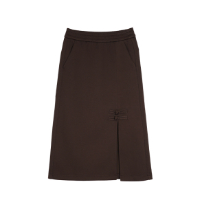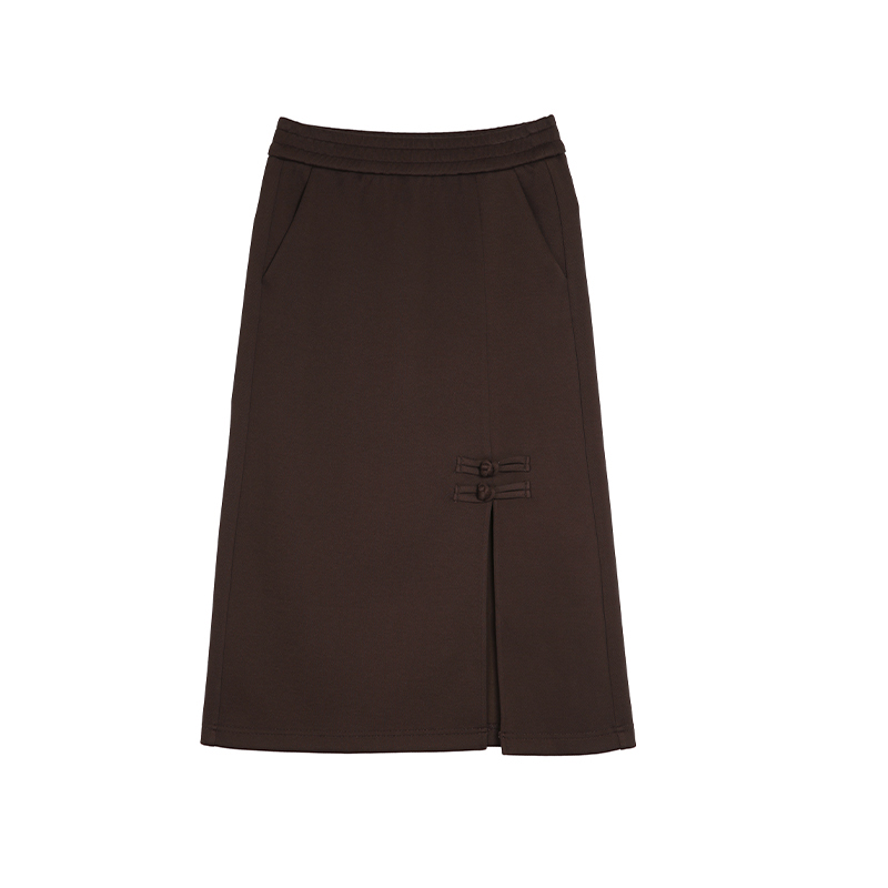 复古提花高腰显瘦开叉半身裙 国风盘扣包臀裙女夏季 大码 黑色新中式
