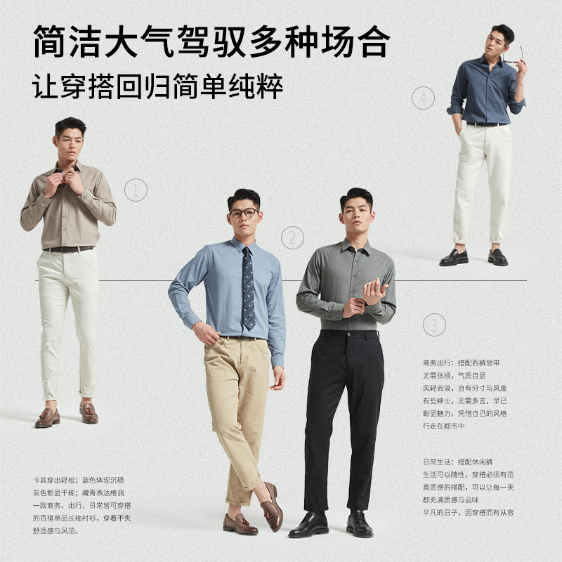 长袖 衬衫 男士 新款 杉杉男装 2025秋季 商务休闲高级衬衣男款 磨毛