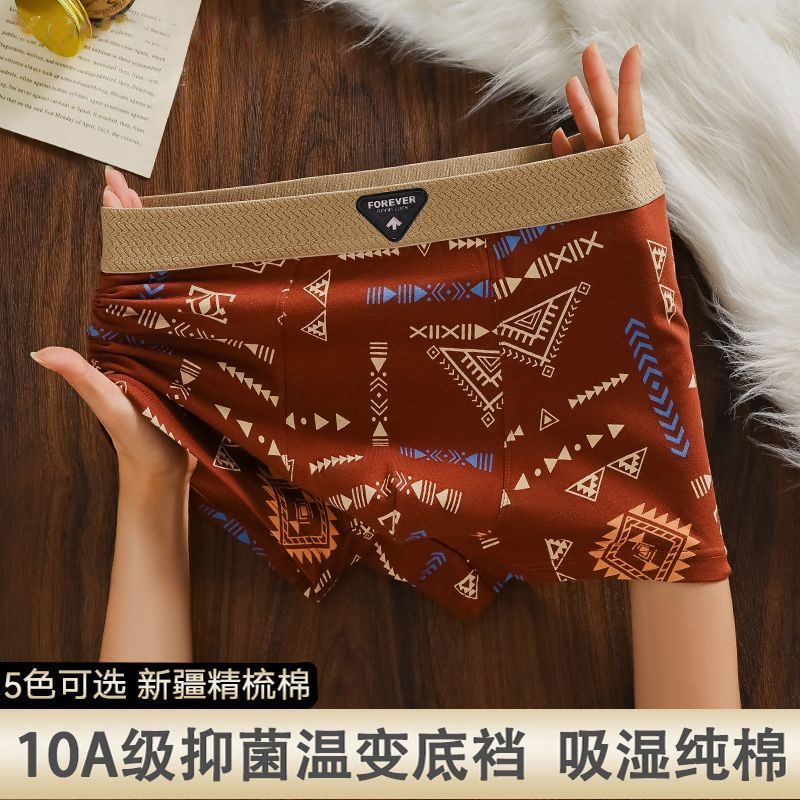 抗菌印花潮流平角裤 男士 精梳棉男生潮流四角短裤 男大码 头 纯棉内裤
