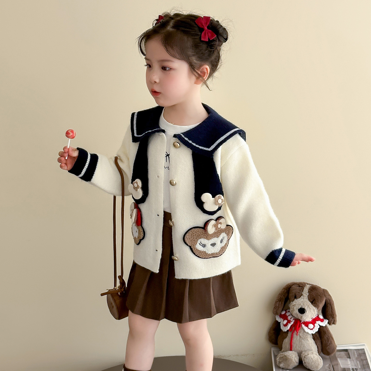 女童洋气毛衣外套2025新款 衣服儿童卡通上衣潮 女孩娃娃领公主开衫