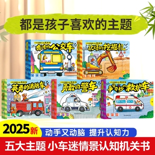 挖掘机 全5册 3岁宝宝绘本洞洞书益 忙碌 儿童3d立体撕不烂机关书推拉翻翻书 小车迷情景认知机关书 3岁婴儿启蒙早教书