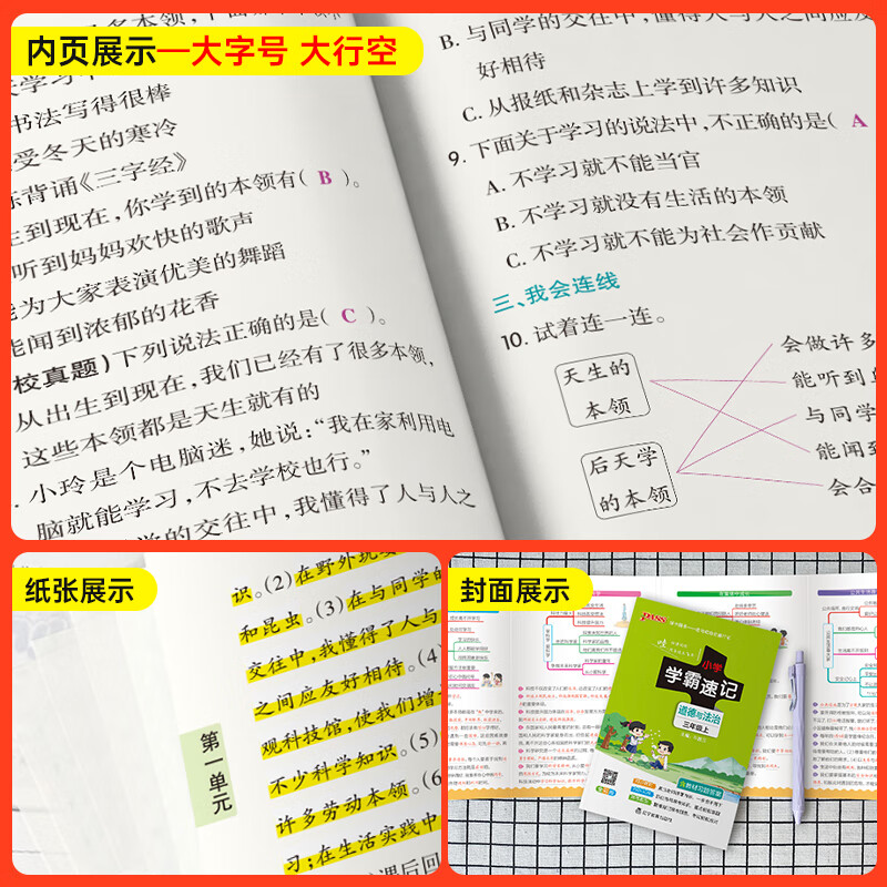 小学3年级课本教材同步课堂笔记知识点讲解全解解析道法思想品德 2025秋版 pass绿卡小学学霸速记三年级上册下册道德与法治人教版