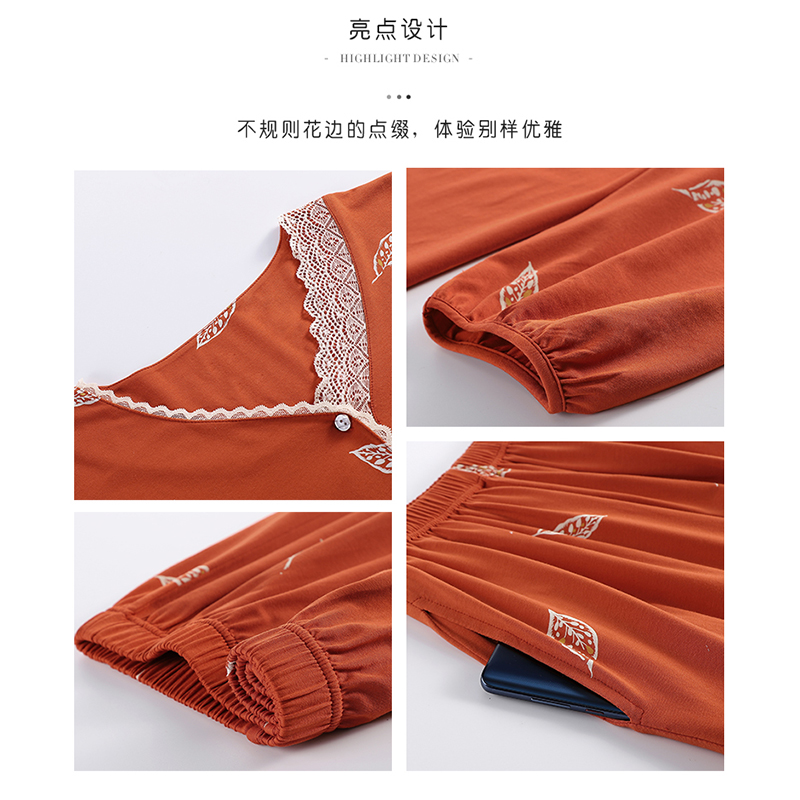纯棉女士长袖 睡衣新款 秋款 家居服秋冬全棉大码 芬腾春秋季 套装 女款