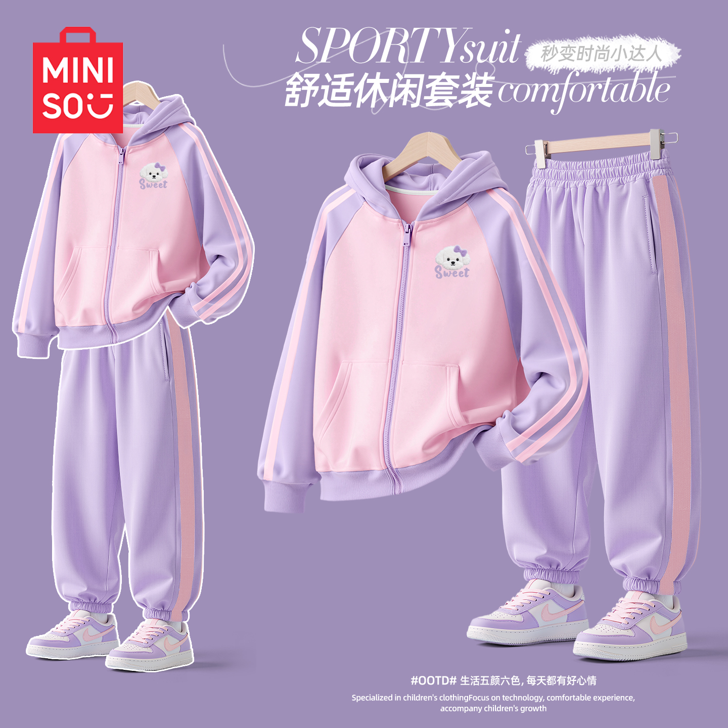 外套儿童秋装 名创优品女童秋季 休闲连帽开衫 2025新款 衣服 运动套装