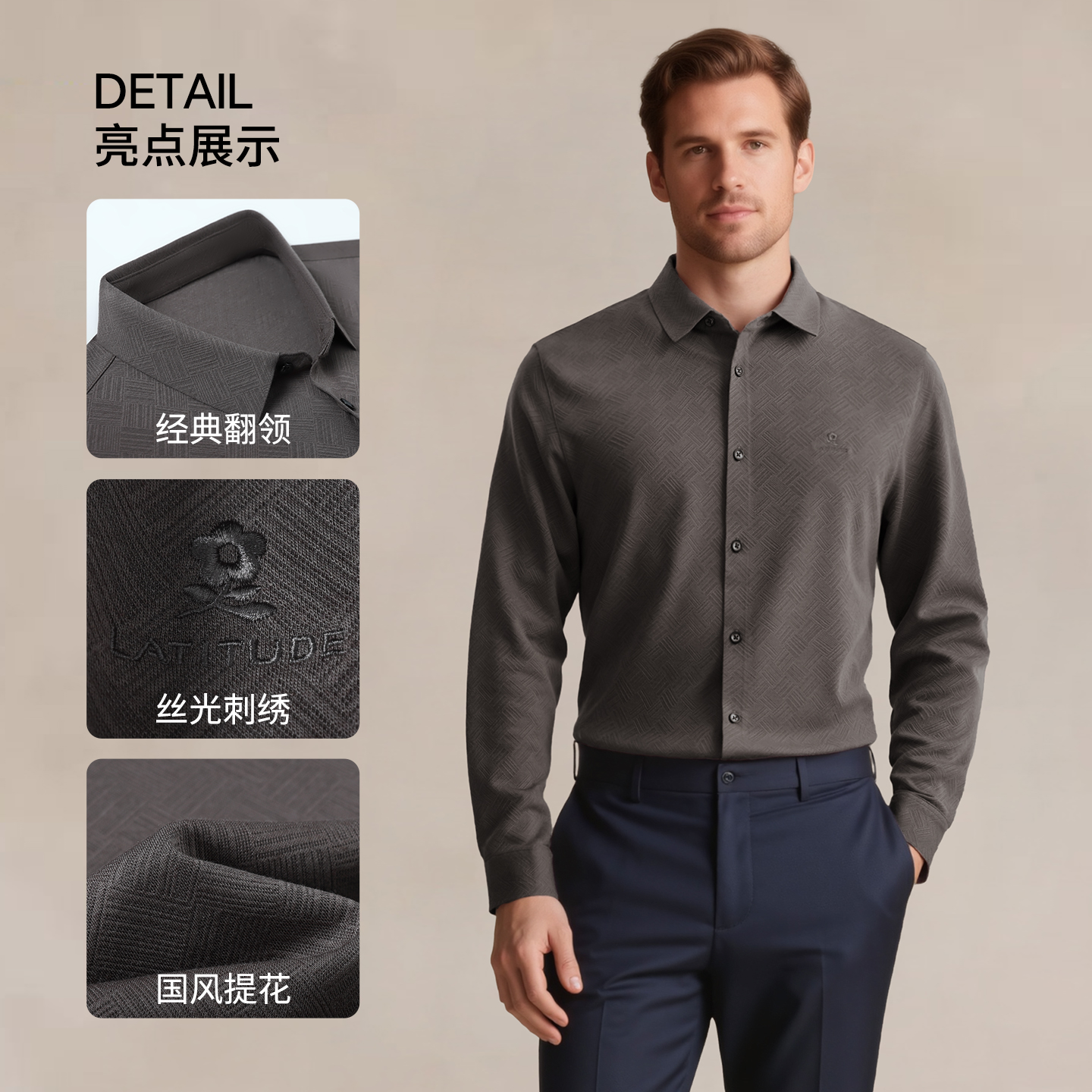 灯芯绒长袖 高级感2025新款 衬衣加绒A 男秋季 班尼路S&K黑色抗皱衬衫
