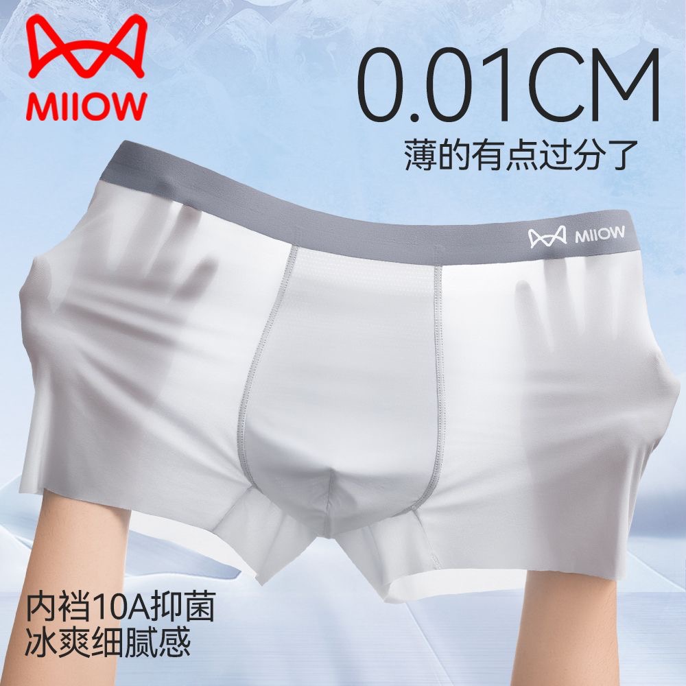 裤 抑菌內裆无痕透气凉感薄款 衩平角抗菌无感丝滑轻薄 冰丝内裤 男士