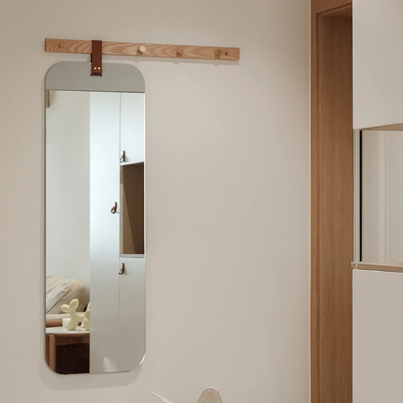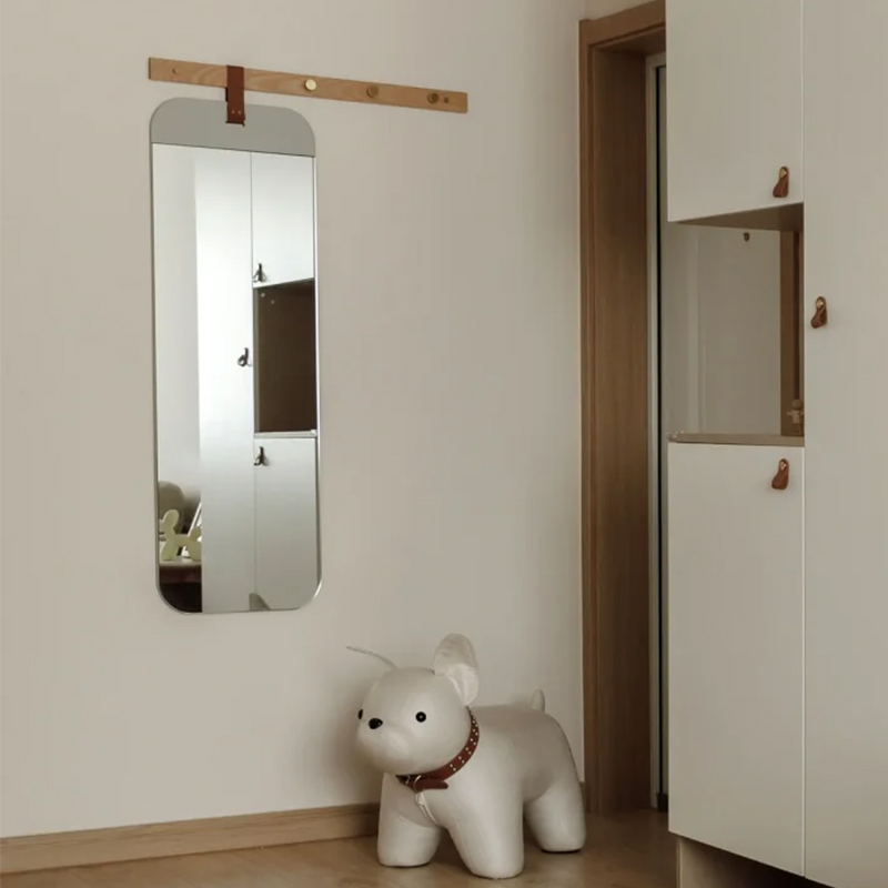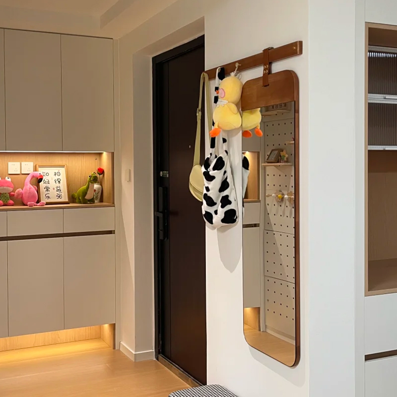 日式 凳一体入户家用简约轻奢挂墙全身壁挂镜实木试衣镜 穿衣镜换鞋