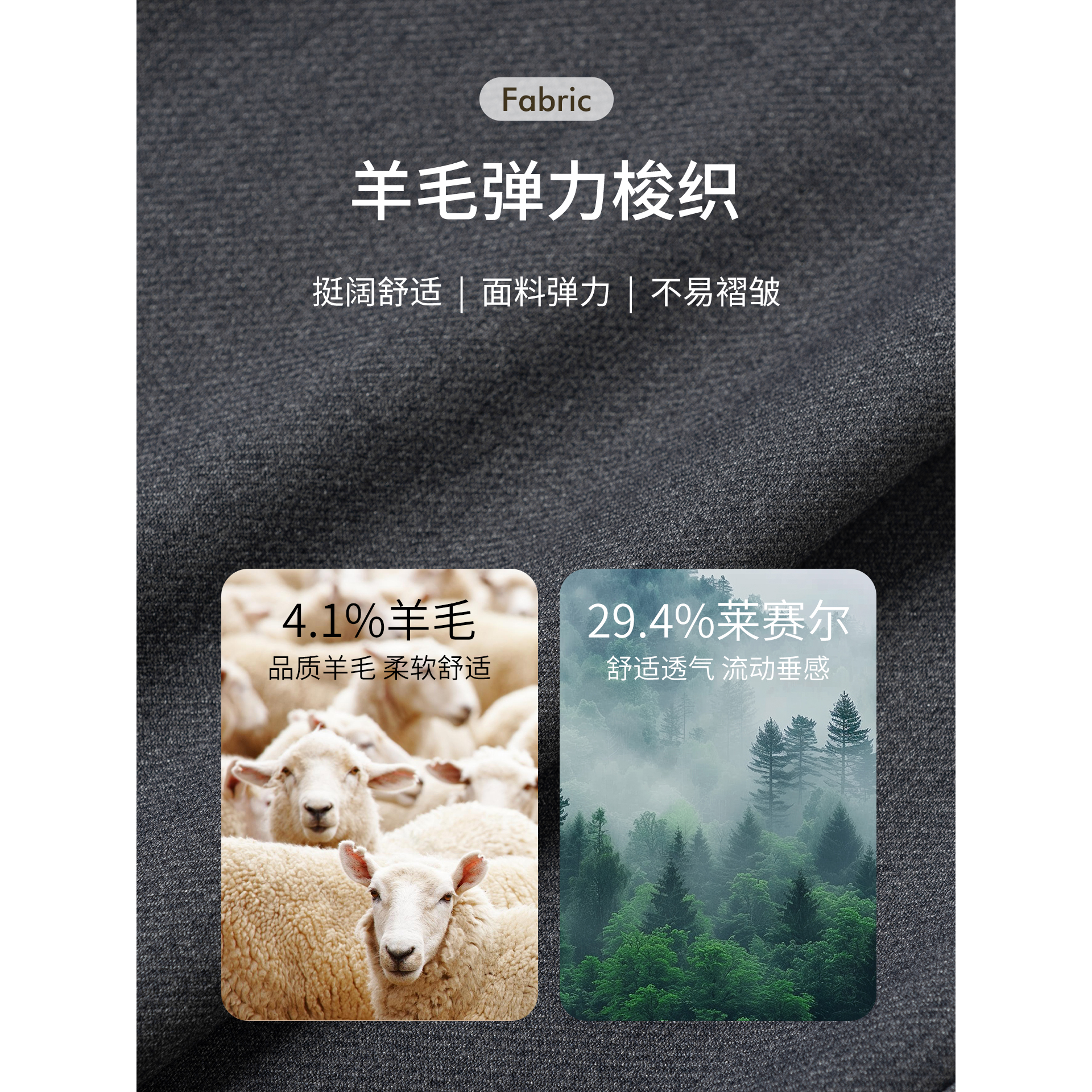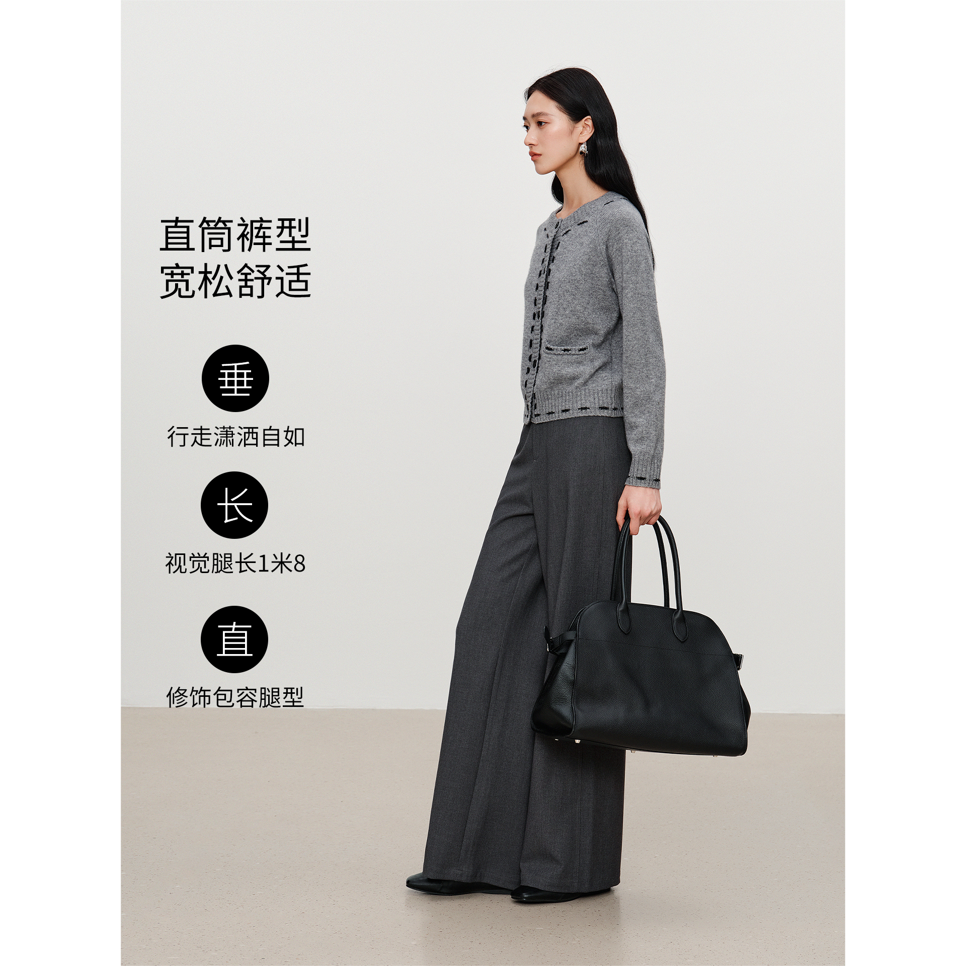 显瘦弹力羊毛长裤 衣香丽影灰色百搭直筒裤 新款 女2025秋装 子 休闲裤