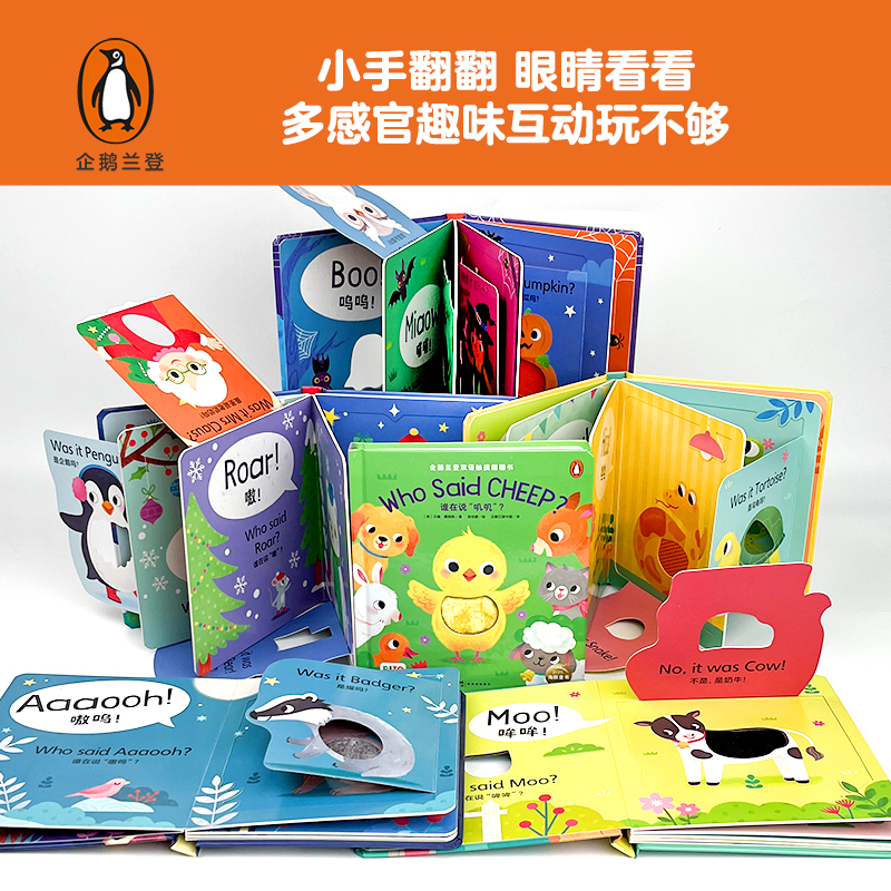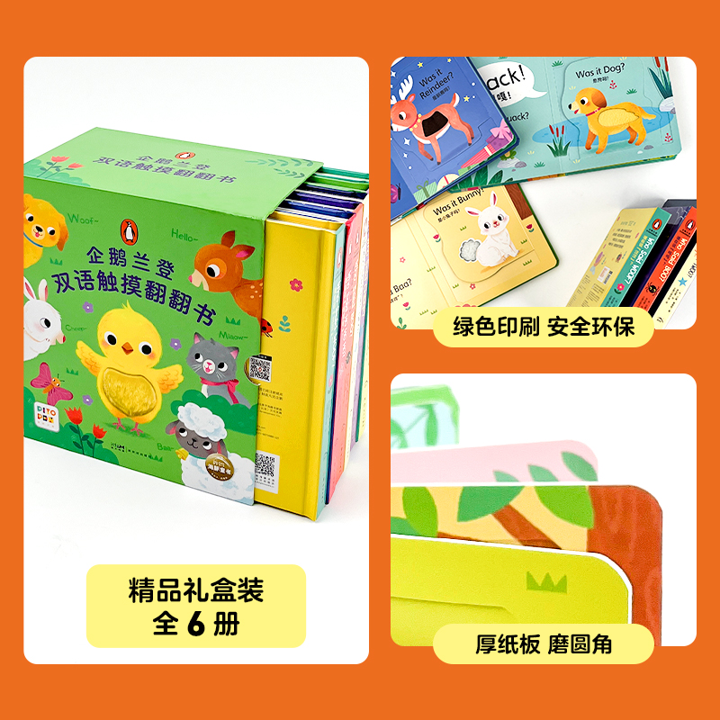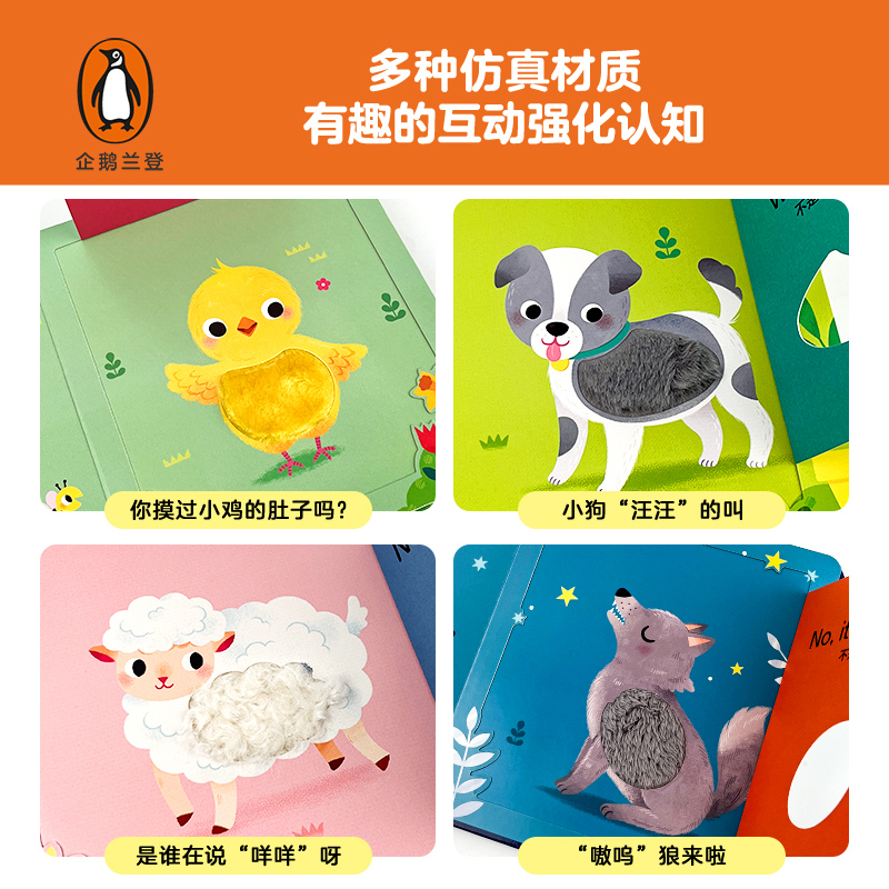 3岁思维启蒙手眼协调亲子阅读绘本送亲子阅读指导课幼儿英语启蒙小手触摸书籍海豚 企鹅兰登双语触摸翻翻书全6册0 点读版